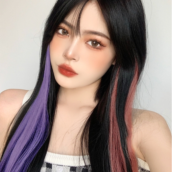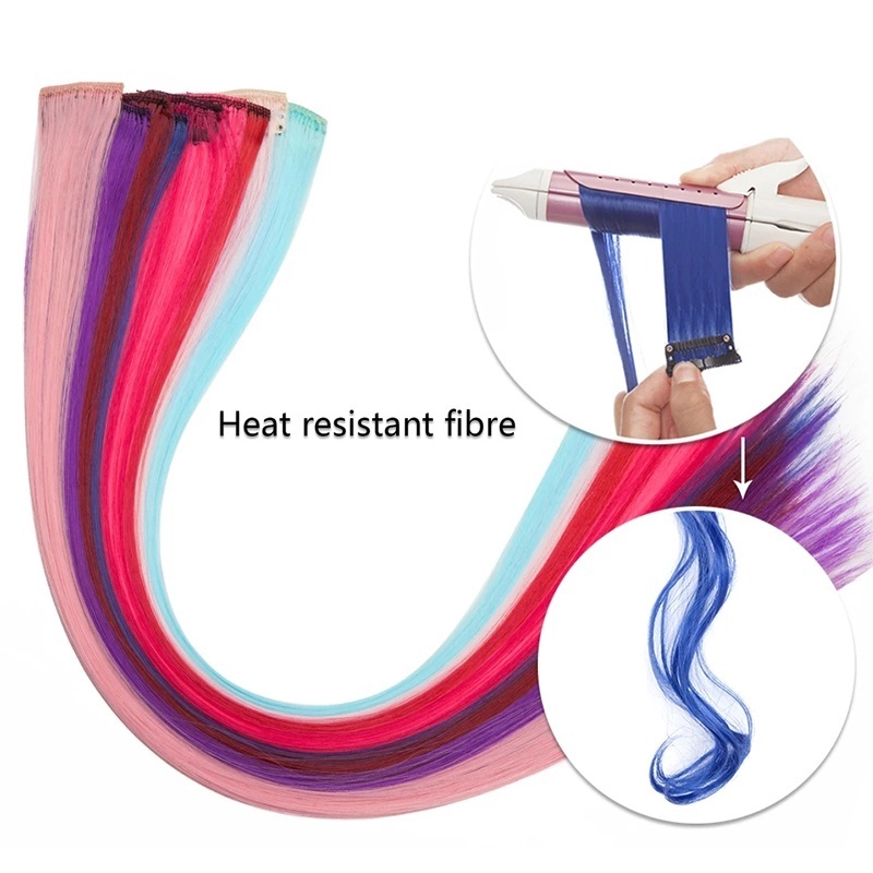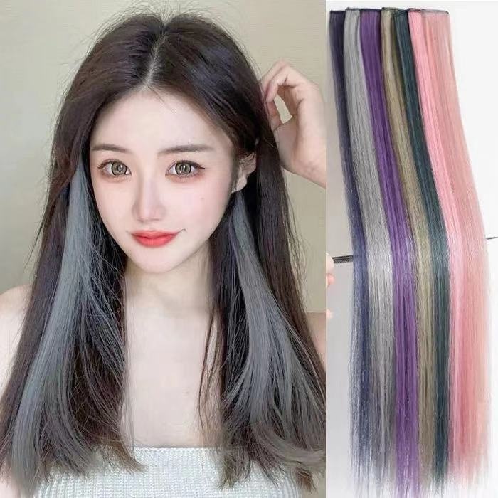 แฮร์พีชไฮไลท์ ช่อไฮไลท์ แบบกิ๊บ ไม่มีตาข่าย ยาว55cm สีเยอะ วิกผมไฮไลท์แบบลิซ่า/JT.Lifestyle