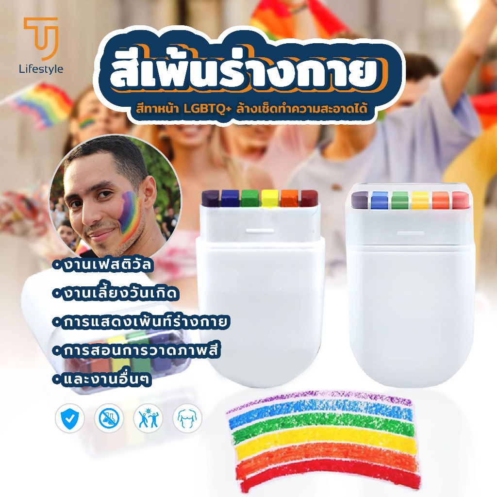 สีเพ้นธ์หน้า ธงสีรุ้ง ธงหลากหลายสี ธงPride Month ธงLGBTQ ธงสำหรับงานปาร์ตี้ แท่งสีรุ้งแท่งสีทาหน้า /JT.Lifestyle