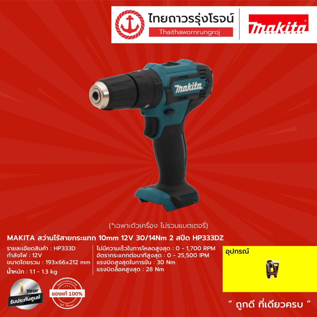 MAKITA HP333 สว่านไร้สายกระแทก 10mm 12v มือบิด 2สปีด C1xB2x1.5ahx10wd HP333DWYE |SET| TTR Store