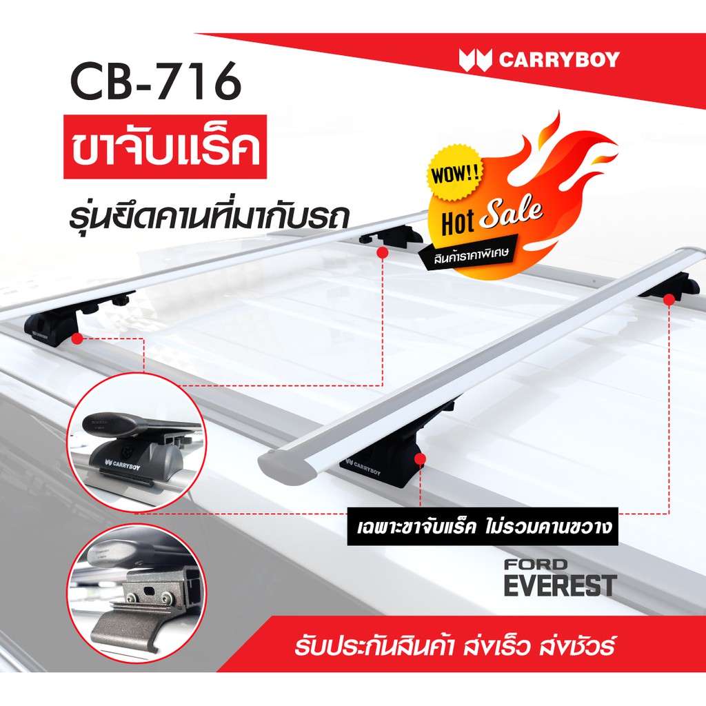 Carryboy แครี่บอย ชุดขาจับแร็คหลังคา จับคานลอยและคานแนบ (รถ 6 รุ่น) (เฉพาะขาจับ)