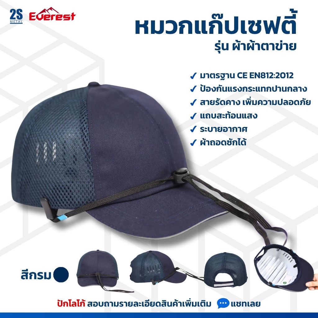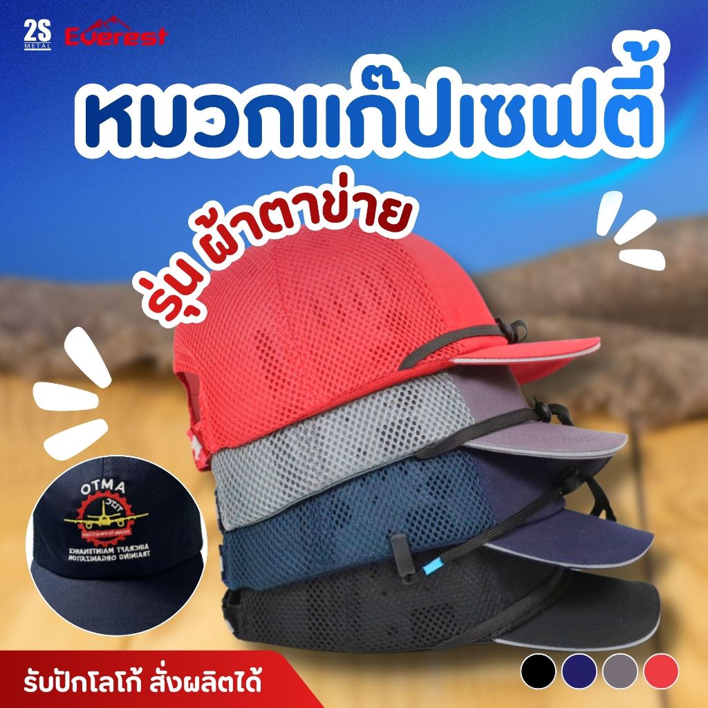 หมวกแก๊ปเซฟตี้ หมวกเซฟตี้ หมวกเซฟตี้เท่ๆ หมวกเซฟตี้วิศวกร รุ่นตาข่ายครึ่งใบ สายรัดคางยางยืด ระบายอากาศ พร้อมแถบสะท้อนแสง