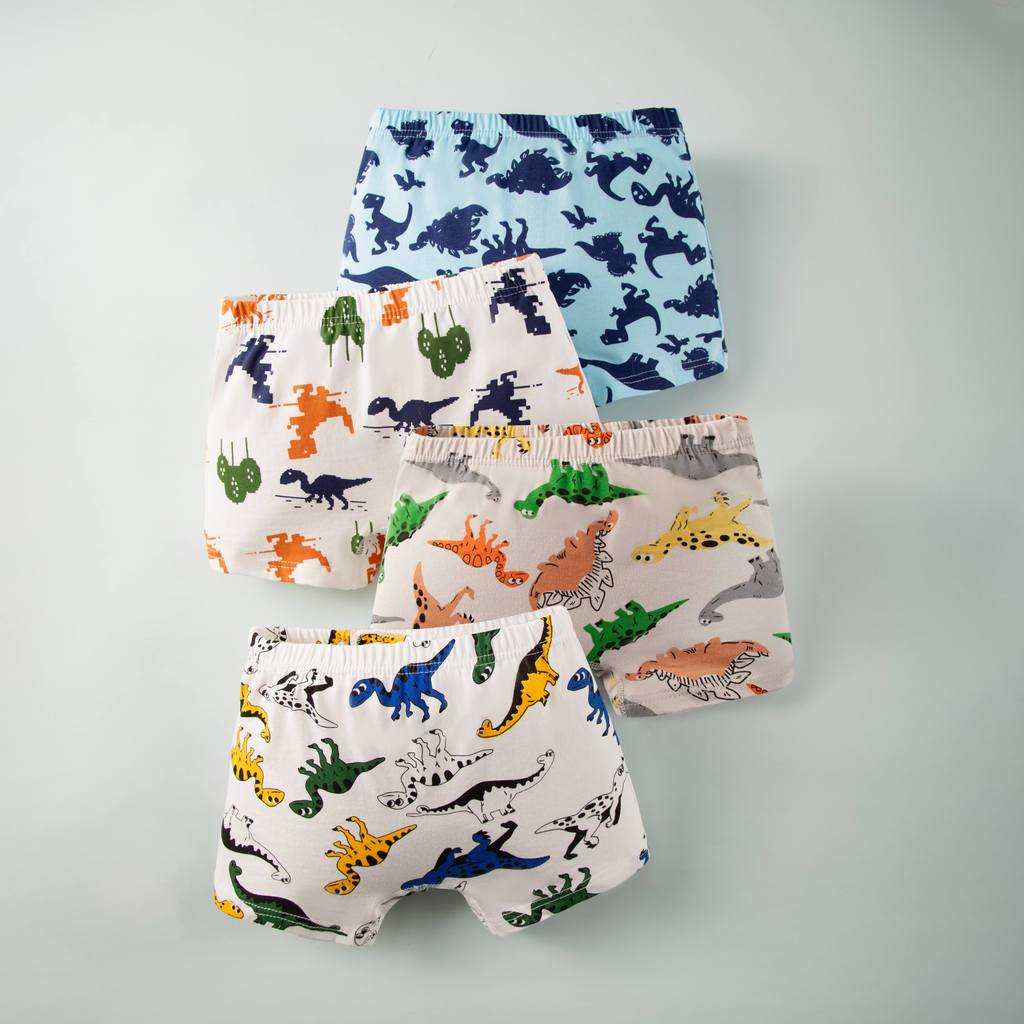 กางเกงในเด็กชาย แพคกล่อง 4 ชิ้น อายุ 3-14 ปี สไตล์ไดโนเสาร์ ทำจากผ้าคอตตอนน้ำหนักเบา