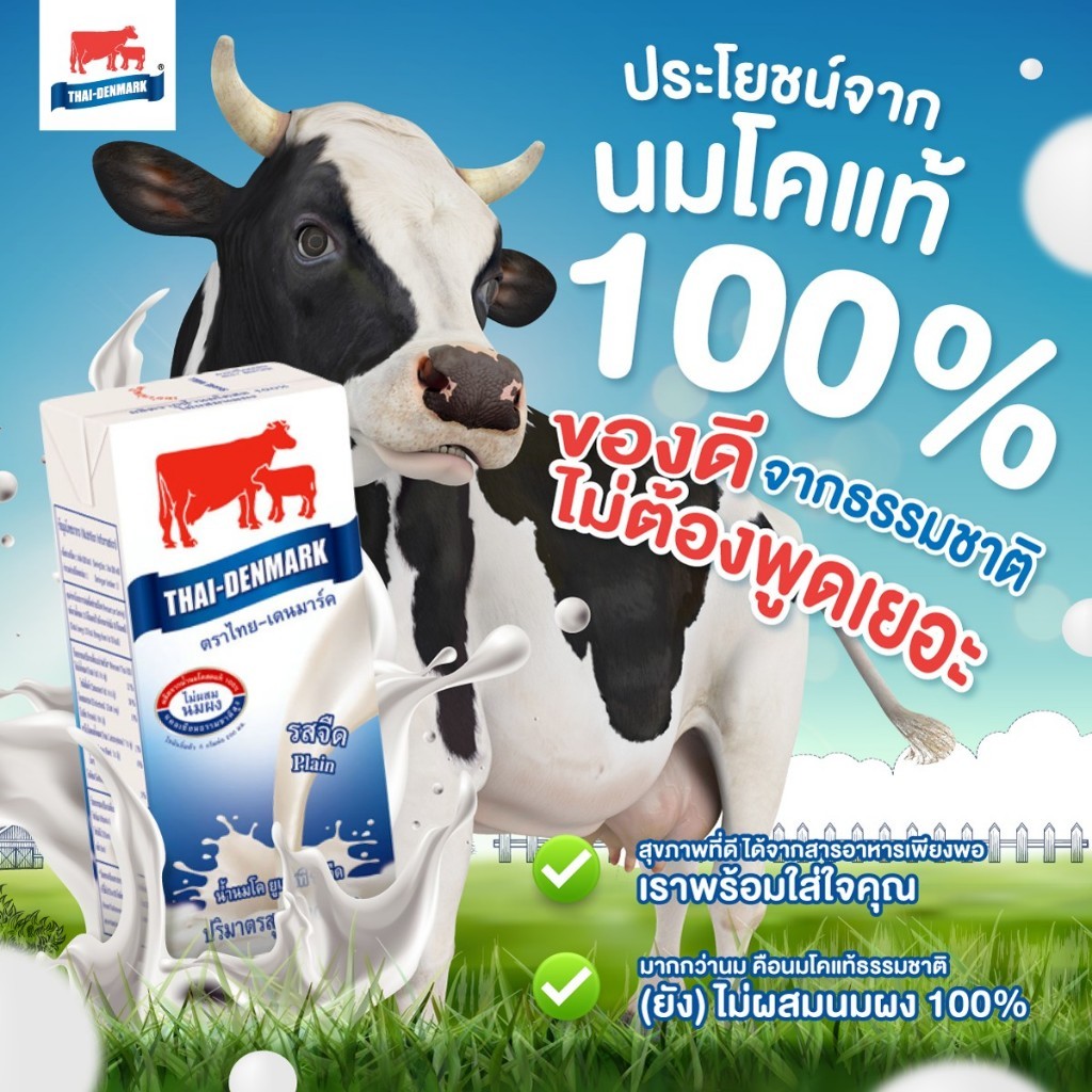 (ขายยกลัง 36 กล่อง) ไทยเดนมาร์ค นมยูเอชที รสจืด 180 มล. นมวัวแดง