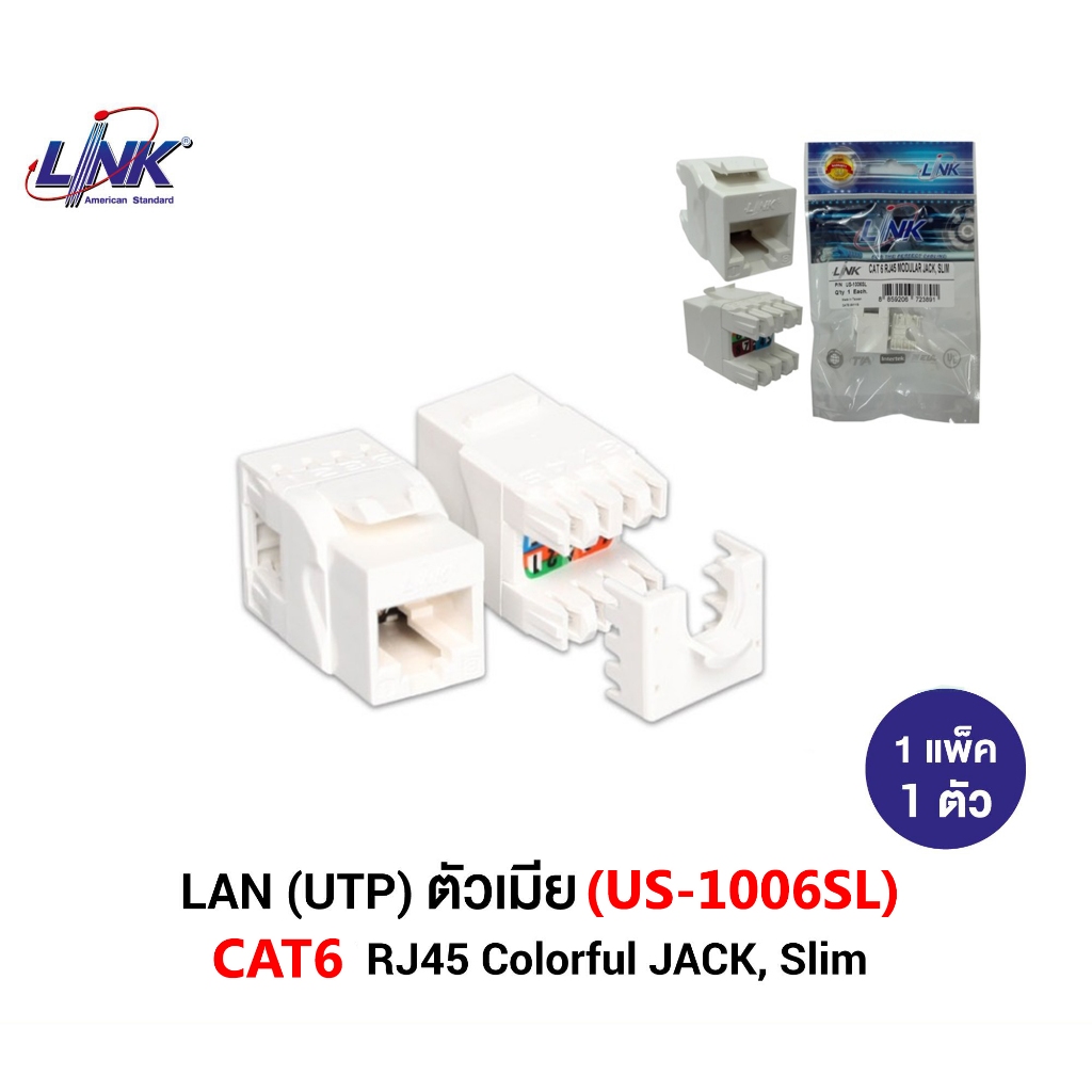 Jack RJ45 CAT6 LINK รุ่น US-1006SL White / US-1006A Color Changeable หัวเต้ารับตัวเมีย CAT6