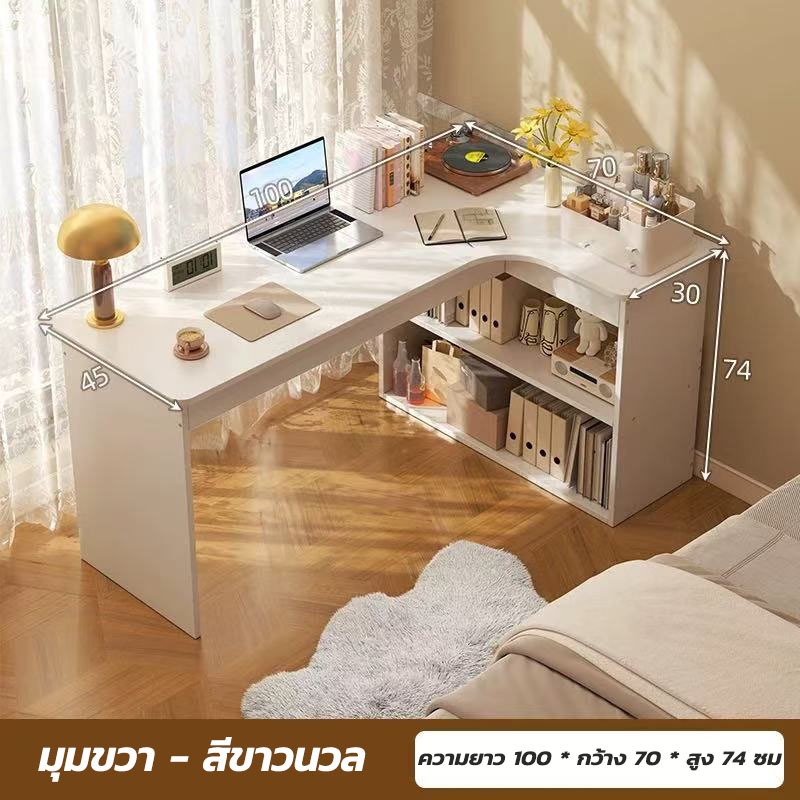 Company mall โต๊ะเข้ามุม ตัวL โต๊ะตัวแอล คอมพิวเตอร์ โต๊ะคอม มีชั้นวาง Furniture โต๊ะ สีไม้ สีอ่อน มินิมอล โต๊ะทำงาน