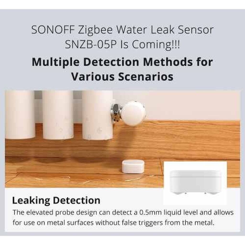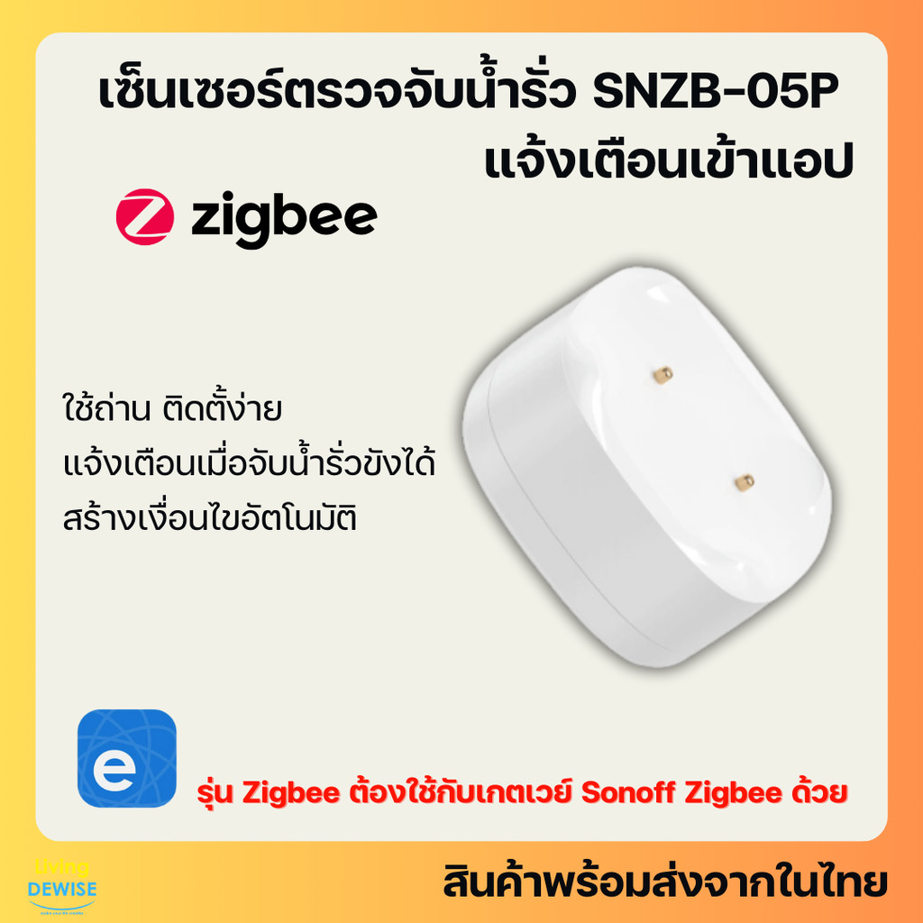 Sonoff SNZB-05P เซ็นเซอร์ตรวจจับน้ำรั่ว Zigbee แบบใส่ถ่าน แจ้งเตือนเข้าแอป ตั้งเงื่อนไขสั่งงานอุปกรณ์อื่น