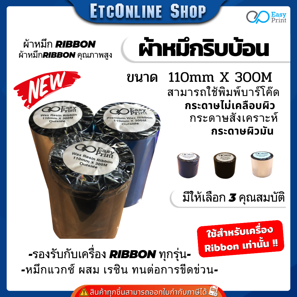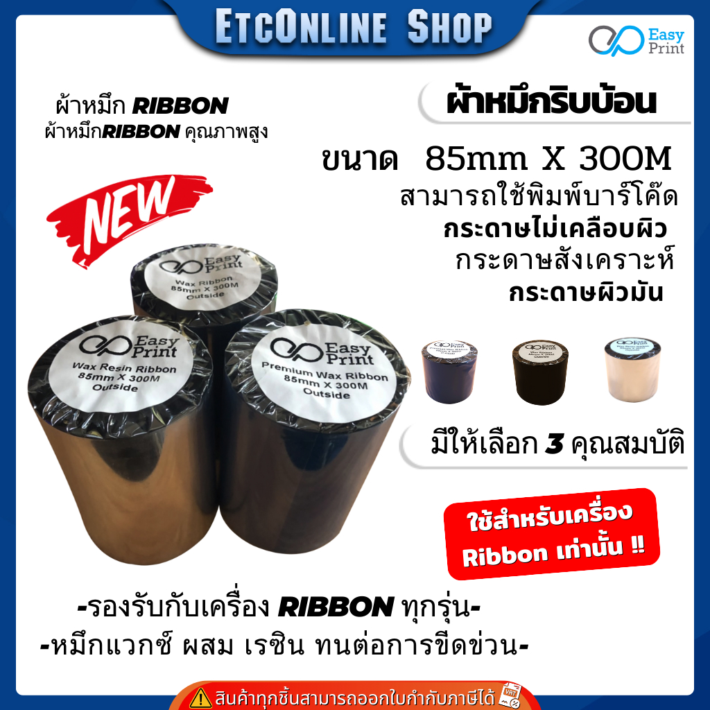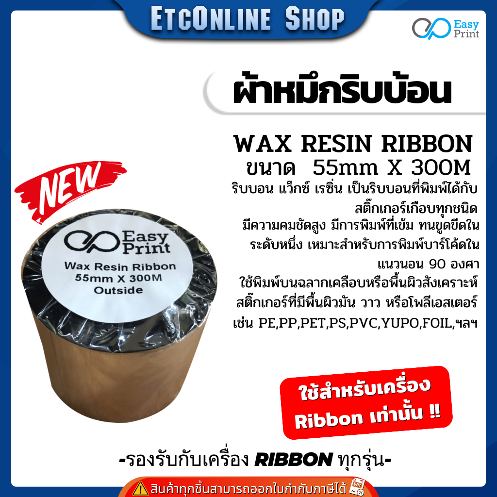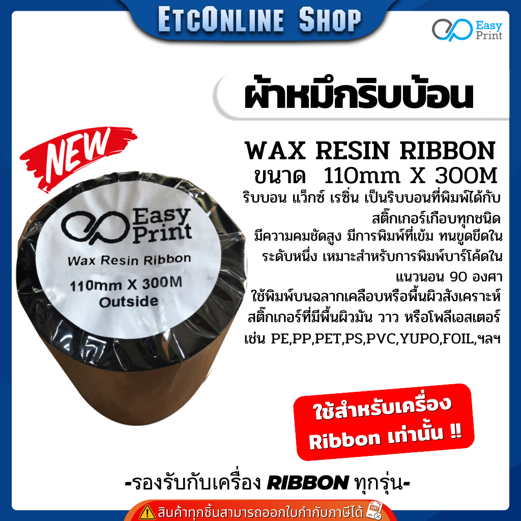 EasyPrint Ribbon Wax-Resin ริบบอนพิมพ์บาร์โค้ด พิมพ์ฉลาก ใบปะหน้า ขนาด55/85/110mm ยาว300m. แกน 1"
