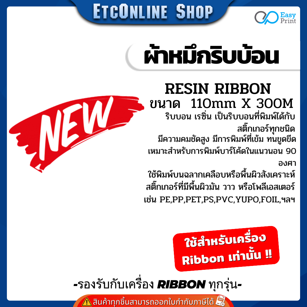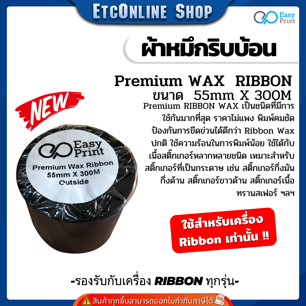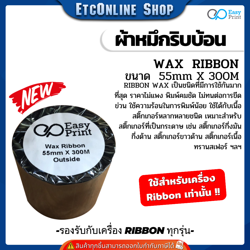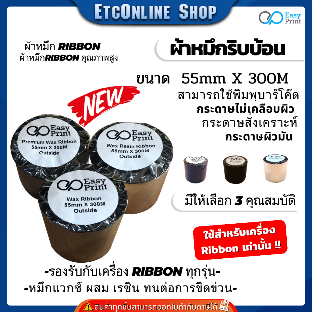 EasyPrint Ribbon Wax-Resin ริบบอนพิมพ์บาร์โค้ด พิมพ์ฉลาก ใบปะหน้า ขนาด55/85/110mm ยาว300m. แกน 1"