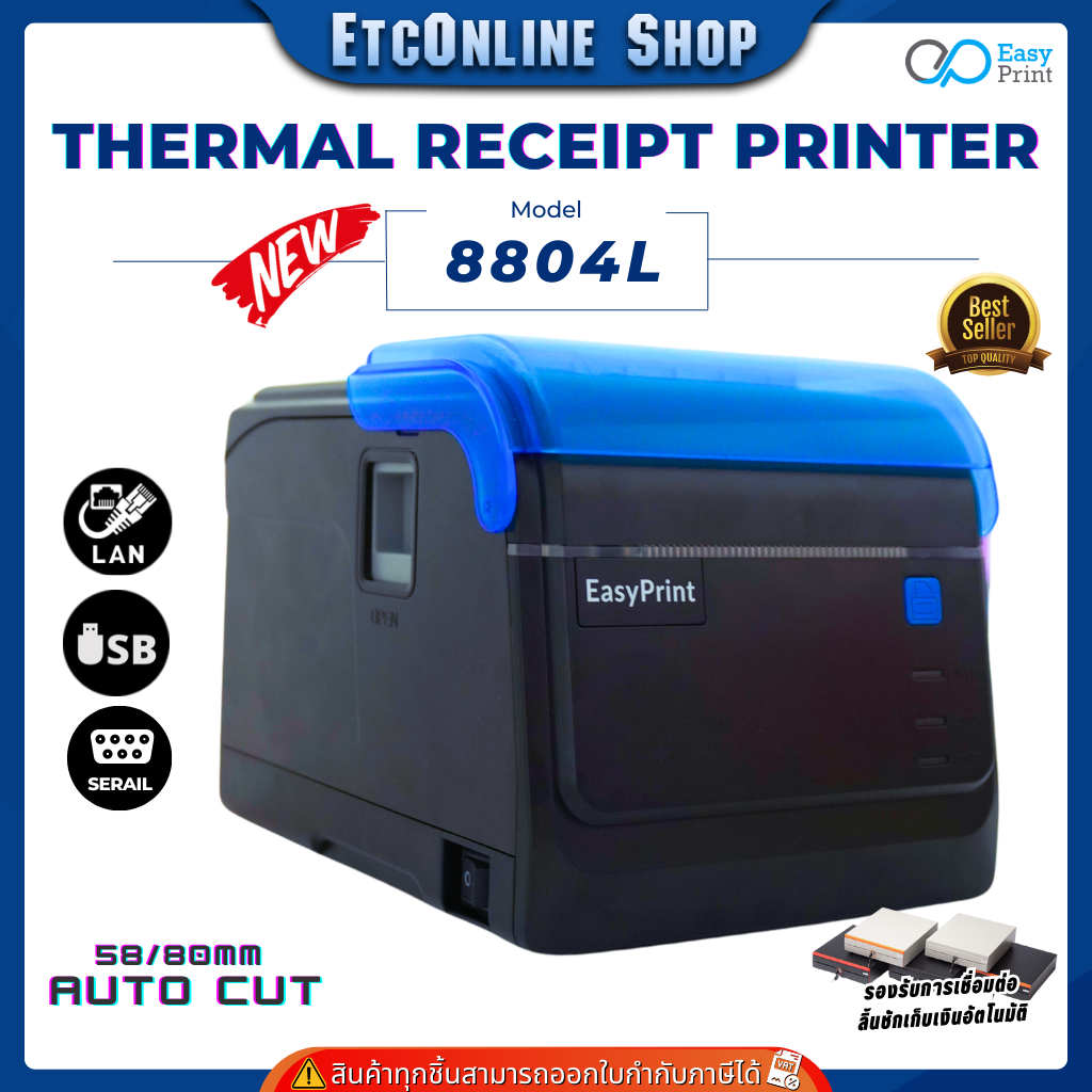 เครื่องพิมพ์ใบเสร็จ สลิป EasyPrint 80/58mm ES-8804 Series Thermal Printer รองรับ Loyverse Ocha