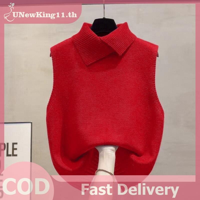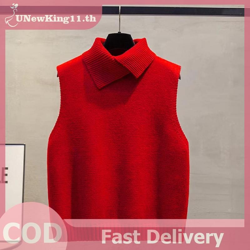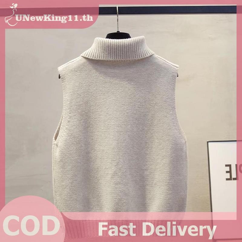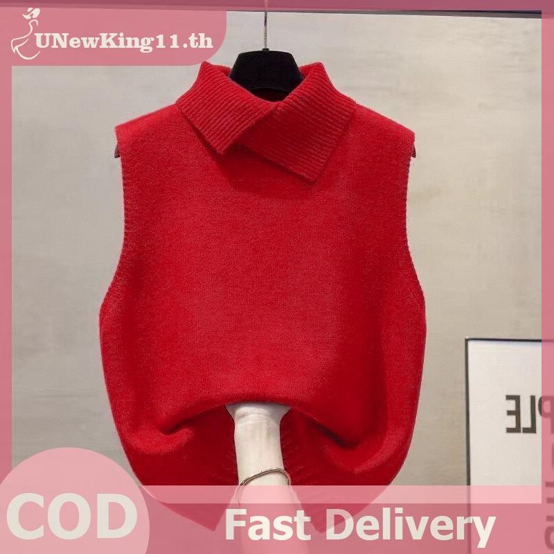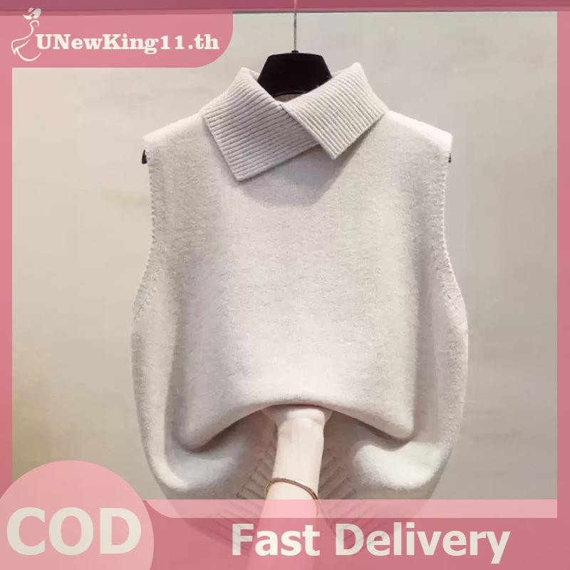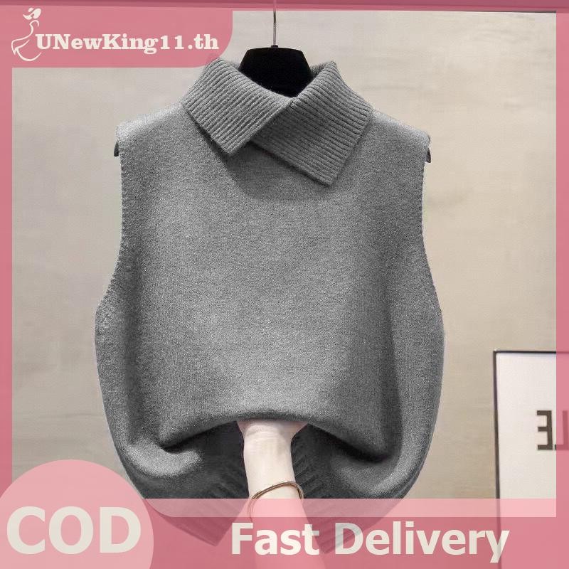 UNewKing เสื้อกั๊กลายถักอเนกประสงค์สำหรับผู้หญิง สไตล์เกาหลี แขนกุดสีทึบ ใส่ได้ทุกโอกาส ในฤดูใบไม้ร่วงและฤดูหนาว