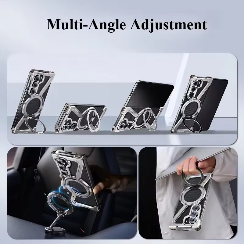 [JLK] Metal Bumper for Samsung Z Fold 7 6 5 W24 S24 S25 Ultra Phone Case Bezel-less Phone Cover for Samsung Folding Screen Shell w/ Magnetic Stand