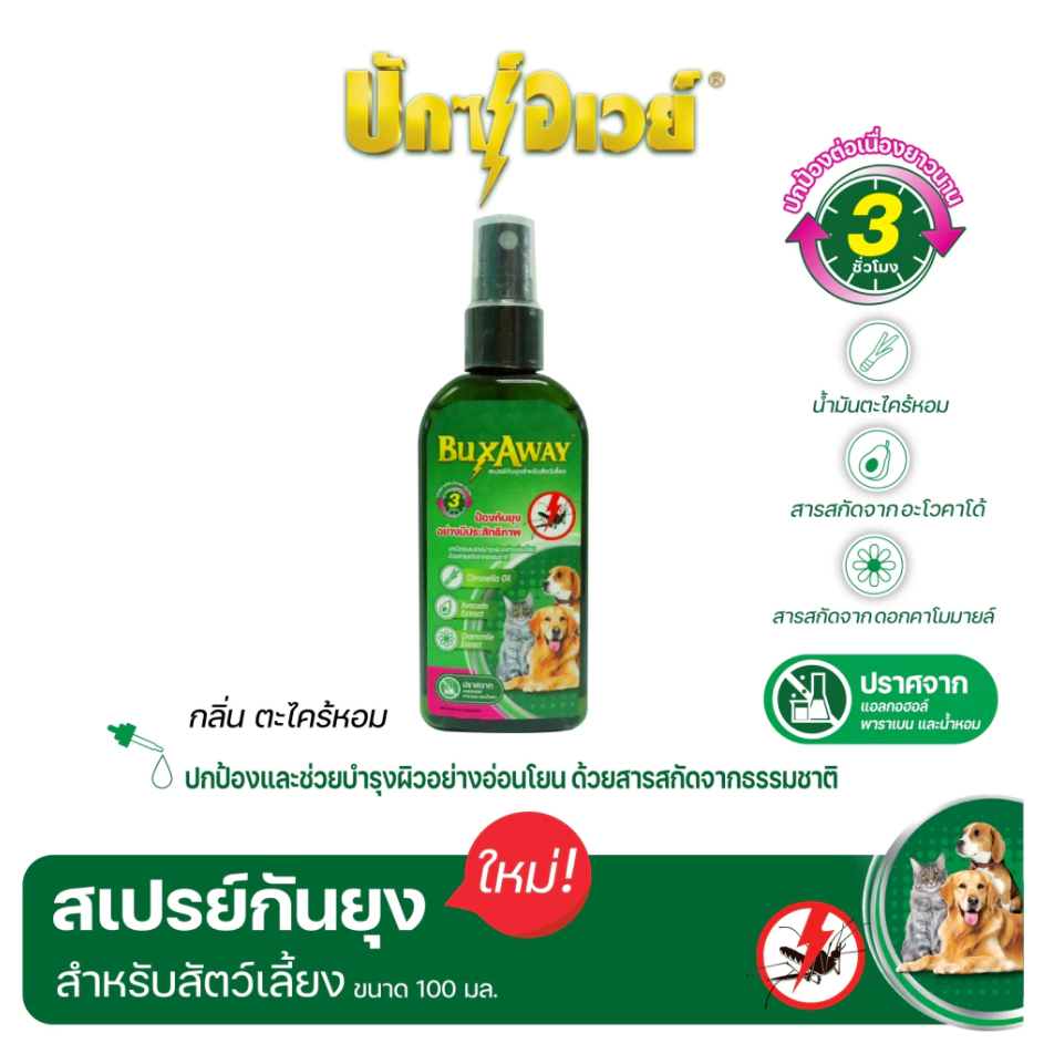 Buxaway สเปรย์กันยุงสัตว์เลี้ยง ขนาด 100 ml. กลิ่นตะไคร้หอม ไล่ยุงและแมลง ปลอดภัย ไม่มีแอลกอฮอล์