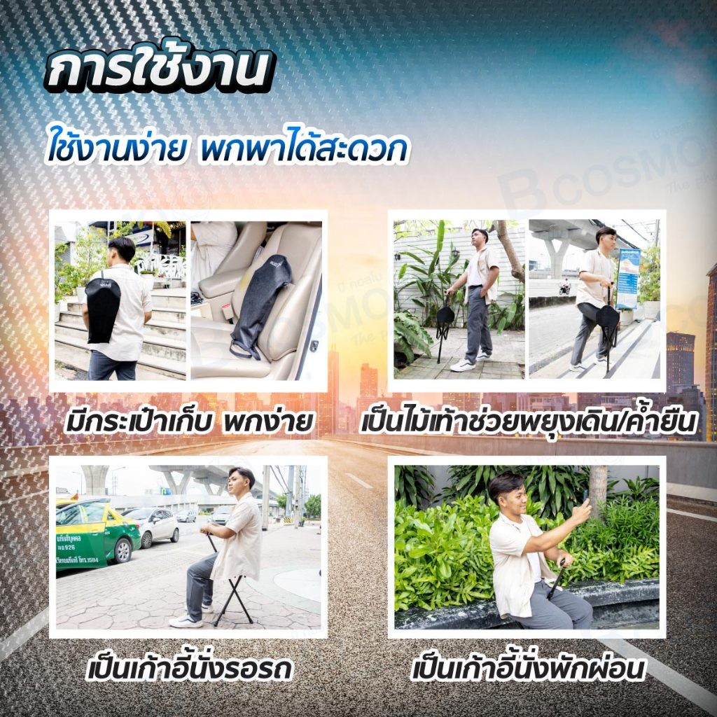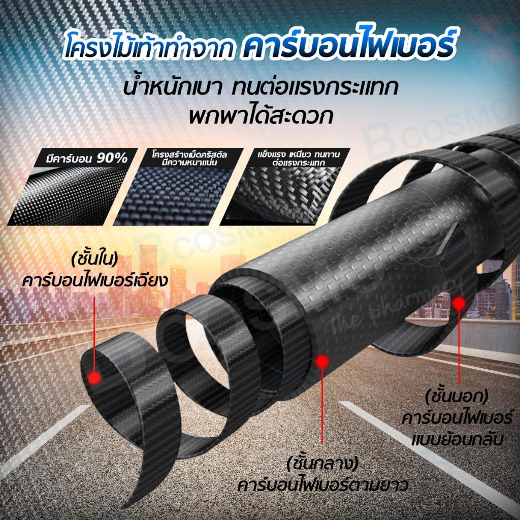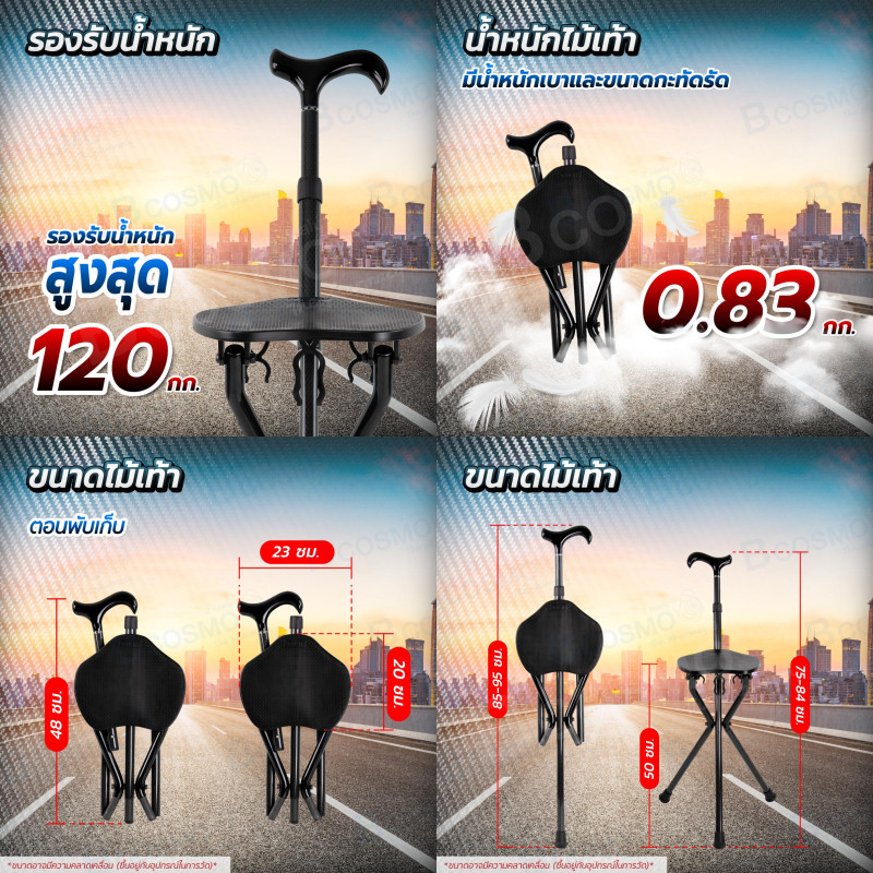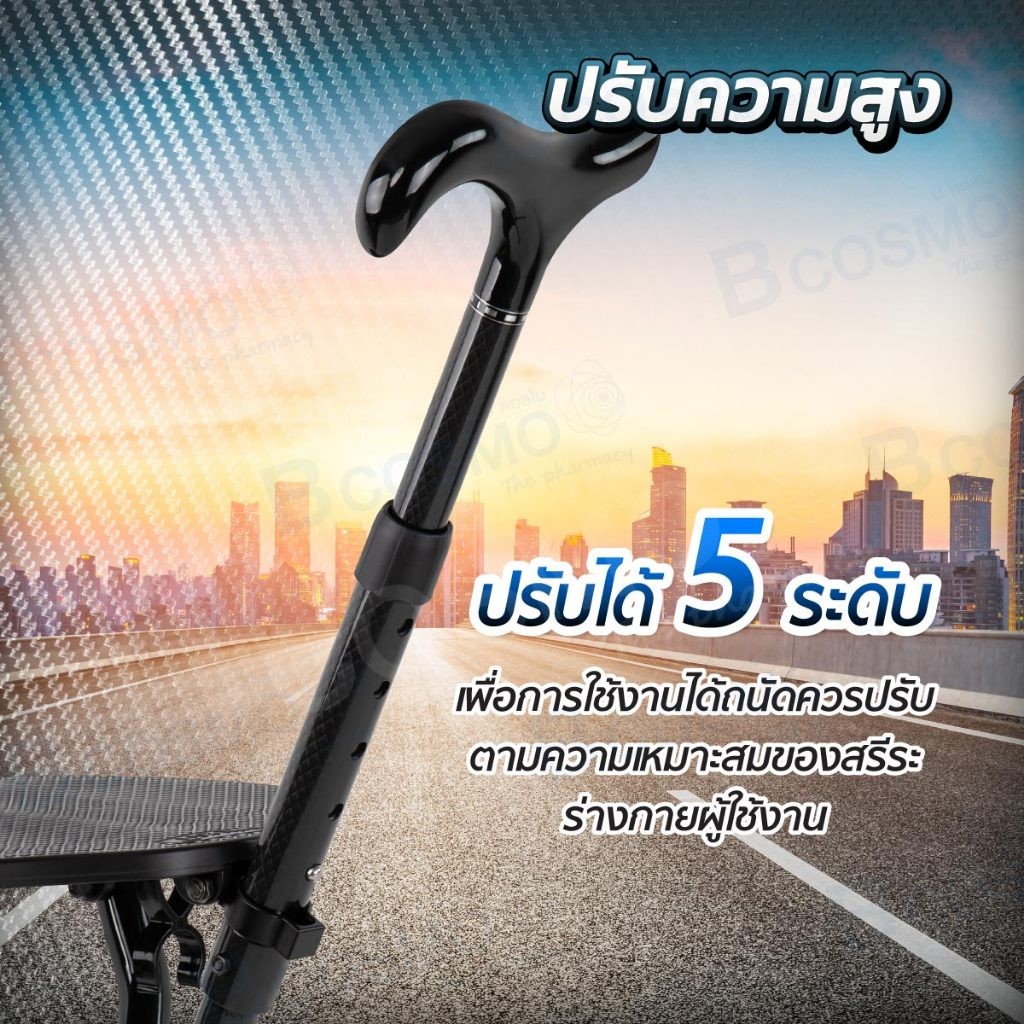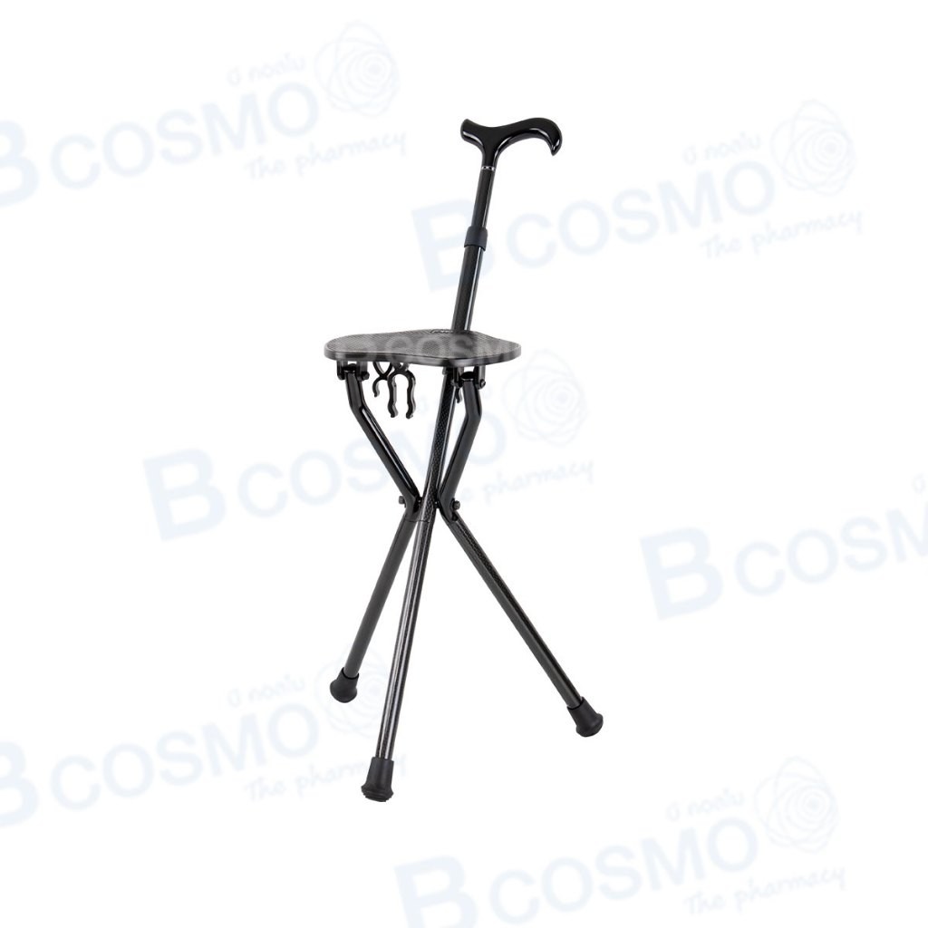 (รับประกันสินค้า 1 ปี) ไม้เท้าคาร์บอน 2 in 1 สีดำ 3 ขา ไม้เท้ากางนั่งได้ น้ำหนักเบา แข็งแรง/CLINIC HUB