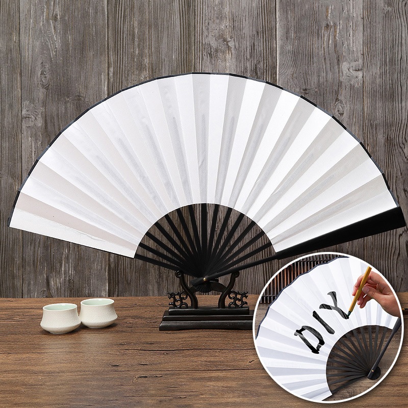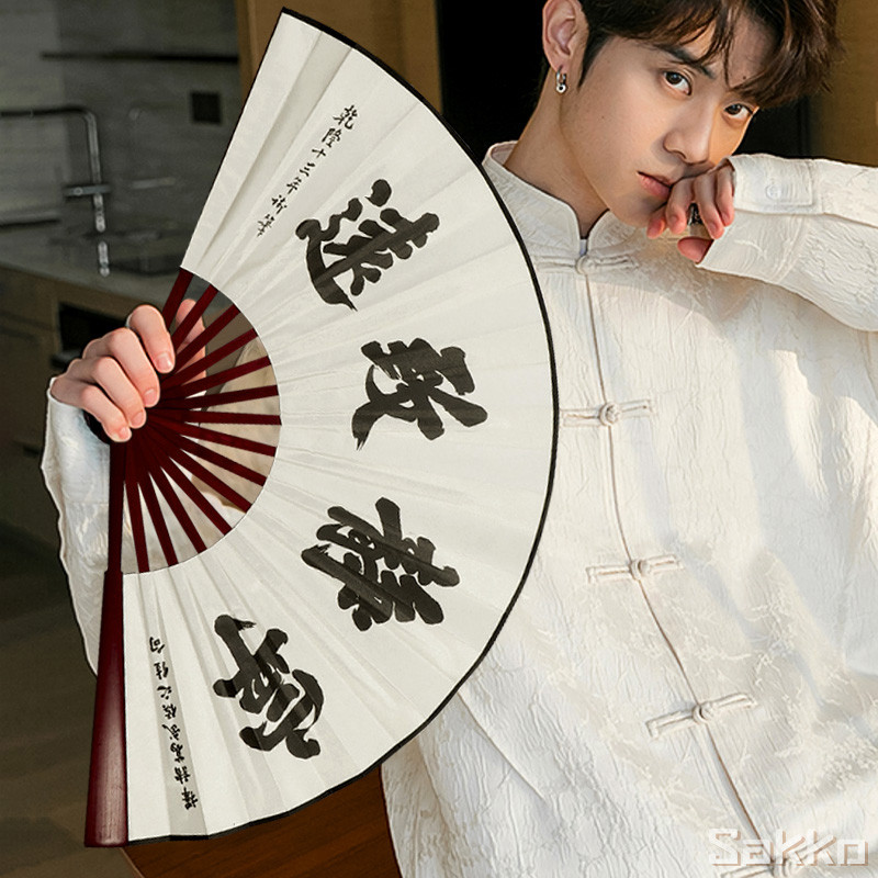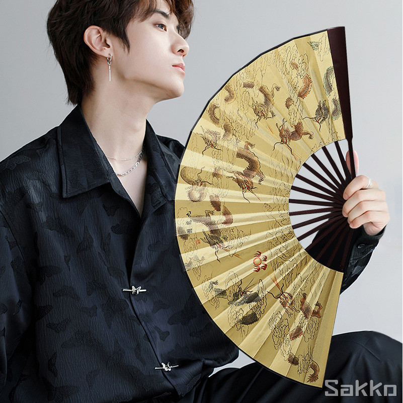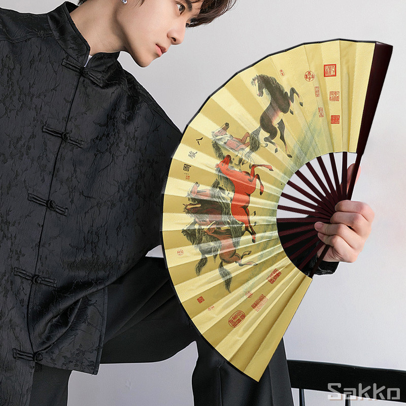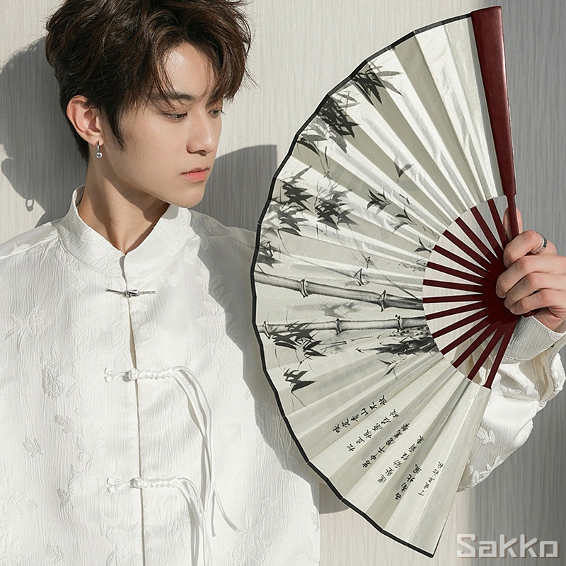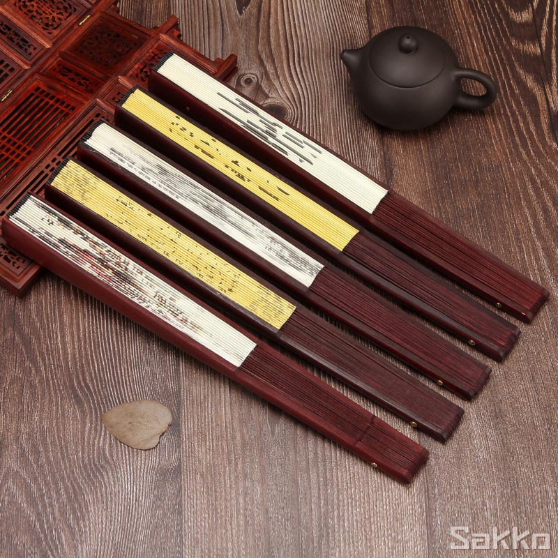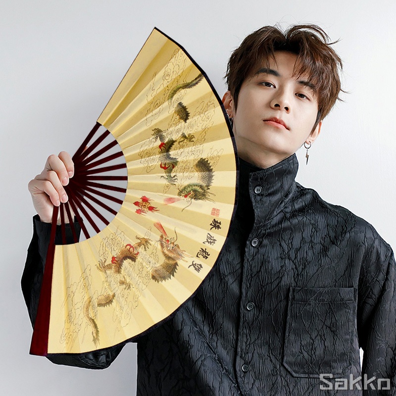 พัดจีนโบราณแบบพับได้ 13 นิ้ว ไม้ไผ่แท้+ผ้าคลาสสิก พกพาสะดวก งานหัตถกรรมประณีต