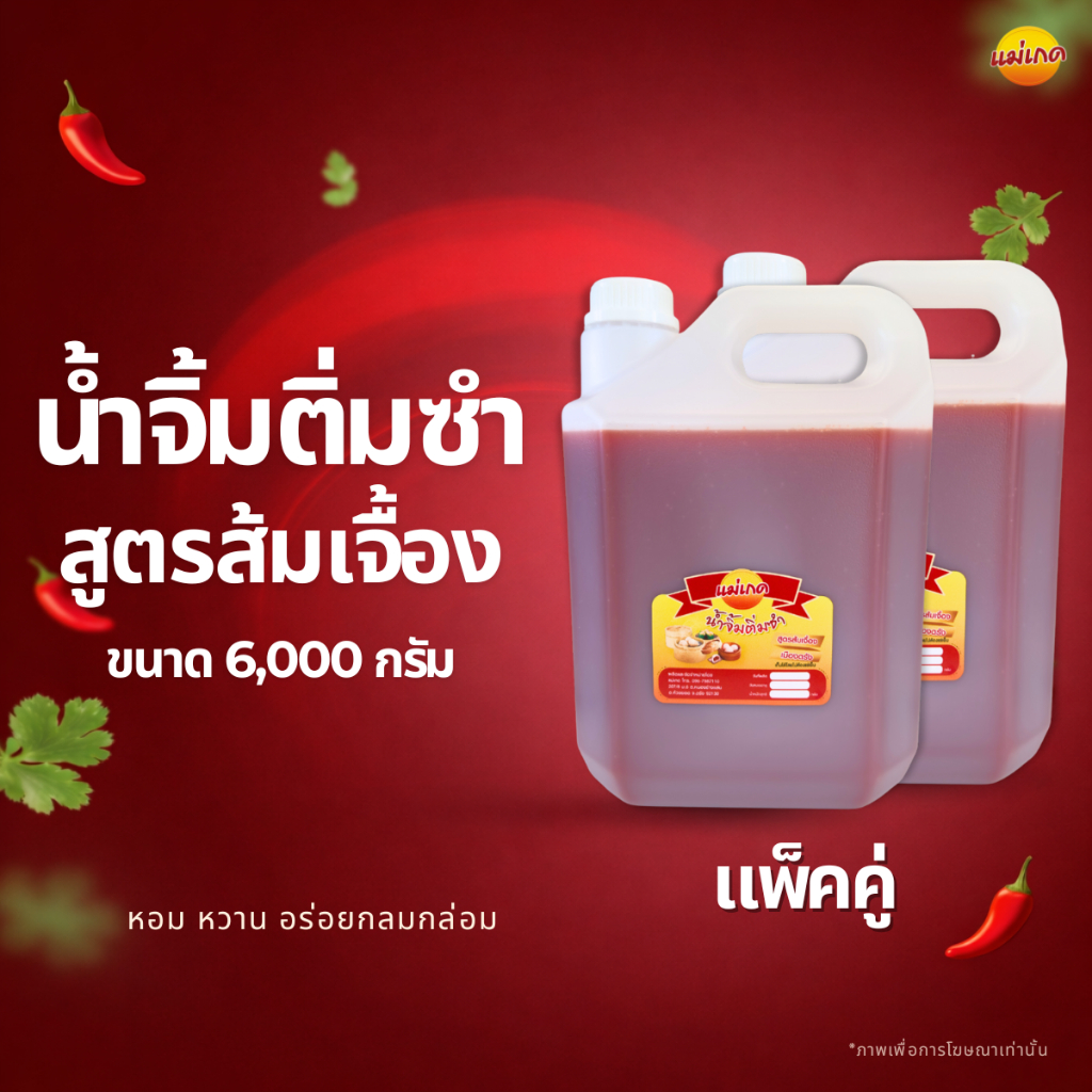 น้ำจิ้มติ่มซำเมืองตรัง สูตรส้มเจื้อง แม่เกด (แพ็คคู่) ขนาด 6,000 กรัม / 2 แกลลอน