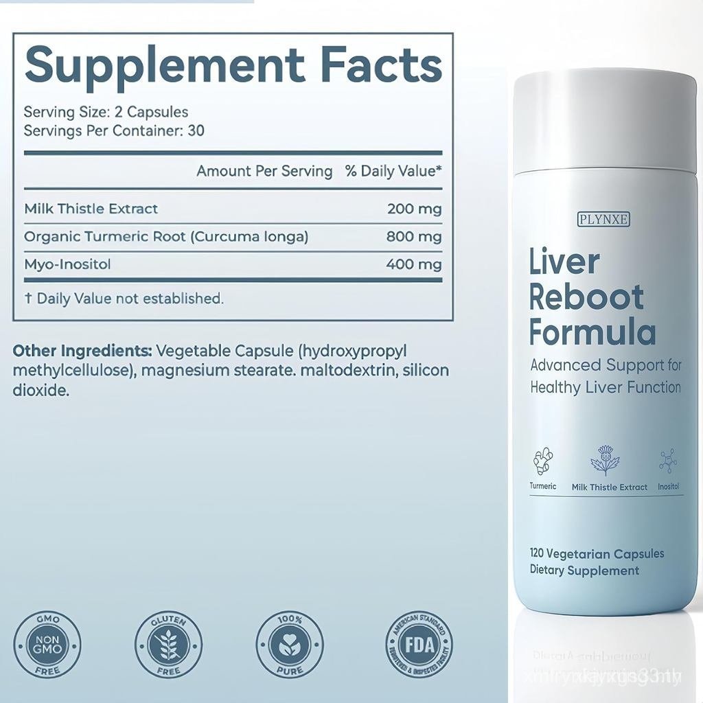 ตับทําความสะอาดดีท็อกซ์และซ่อมแคปซูลสูตรอาหารเสริมตับด้วยสารสกัดจากมิลค์ทิสเทิลขมิ้นอิโนซิทอลแคปซูลตับสุขภาพตับ60แคปซูลมังสวิรัติ