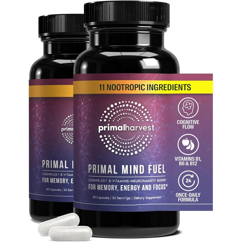 สมองขยายโดยการเก็บเกี่ยวพรีมลมายด์เชื้อเพลิงสมองบูสเตอร์สําหรับโฟกัสพลังงานความชัดเจนและสมองสุขภาพ 30 แคปซูล Nootrics ช่องสมองสําหรับผู้ชายและผู้หญิง