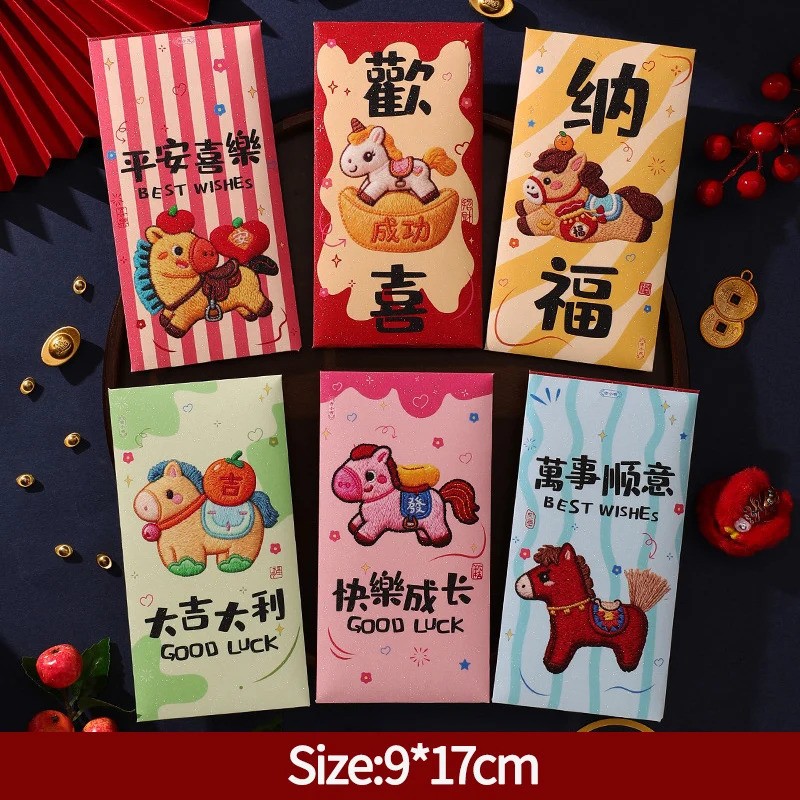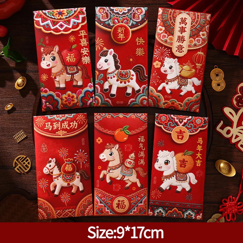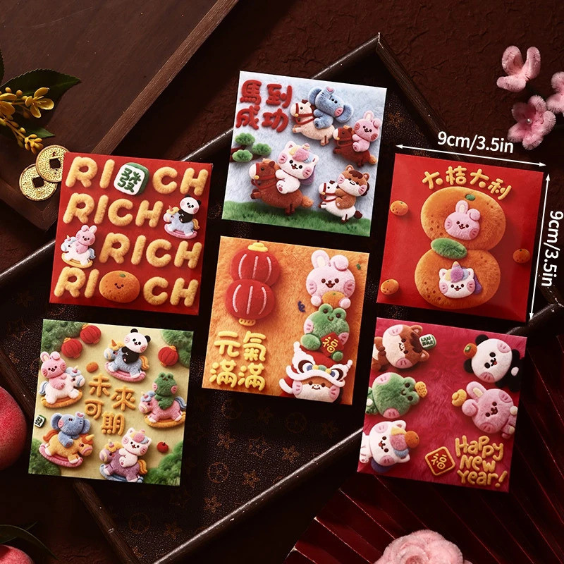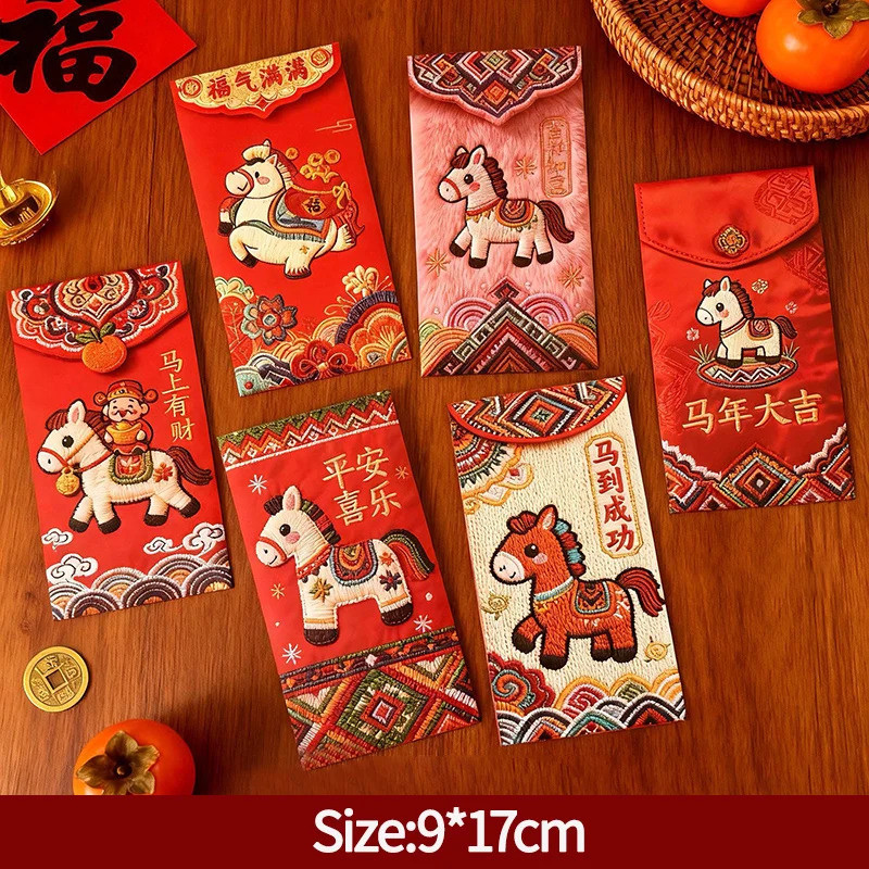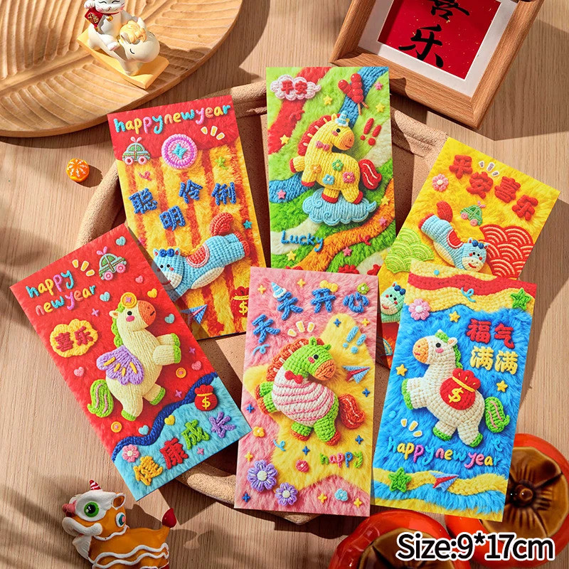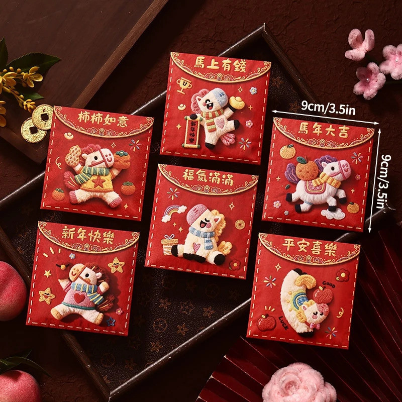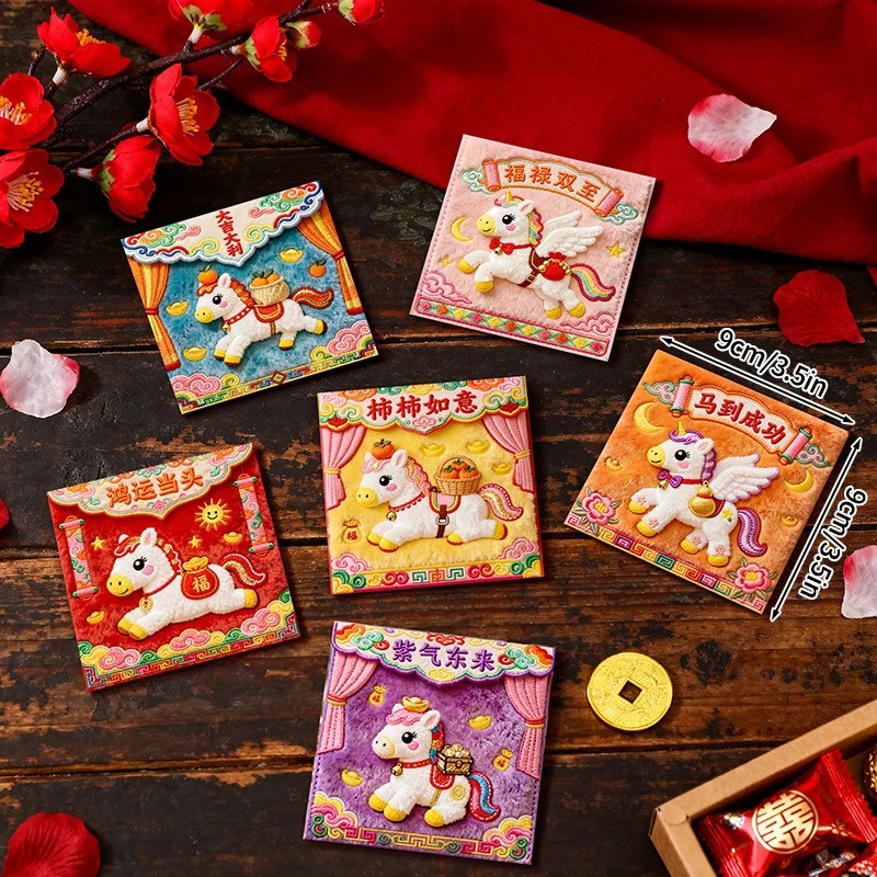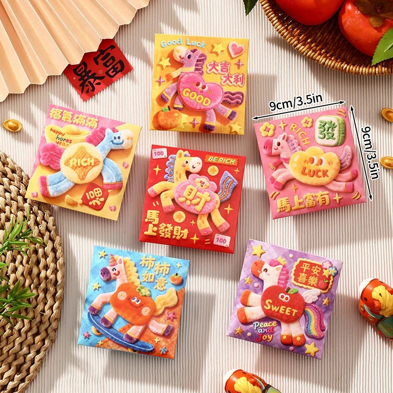 6PCS Creative 3D Hongbag Horse ปีใหม่ซองจดหมายสีแดงจีนแบบดั้งเดิม Lucky Money กระเป๋า 2026 ของขวัญปีใหม่กระเป๋าเงิน