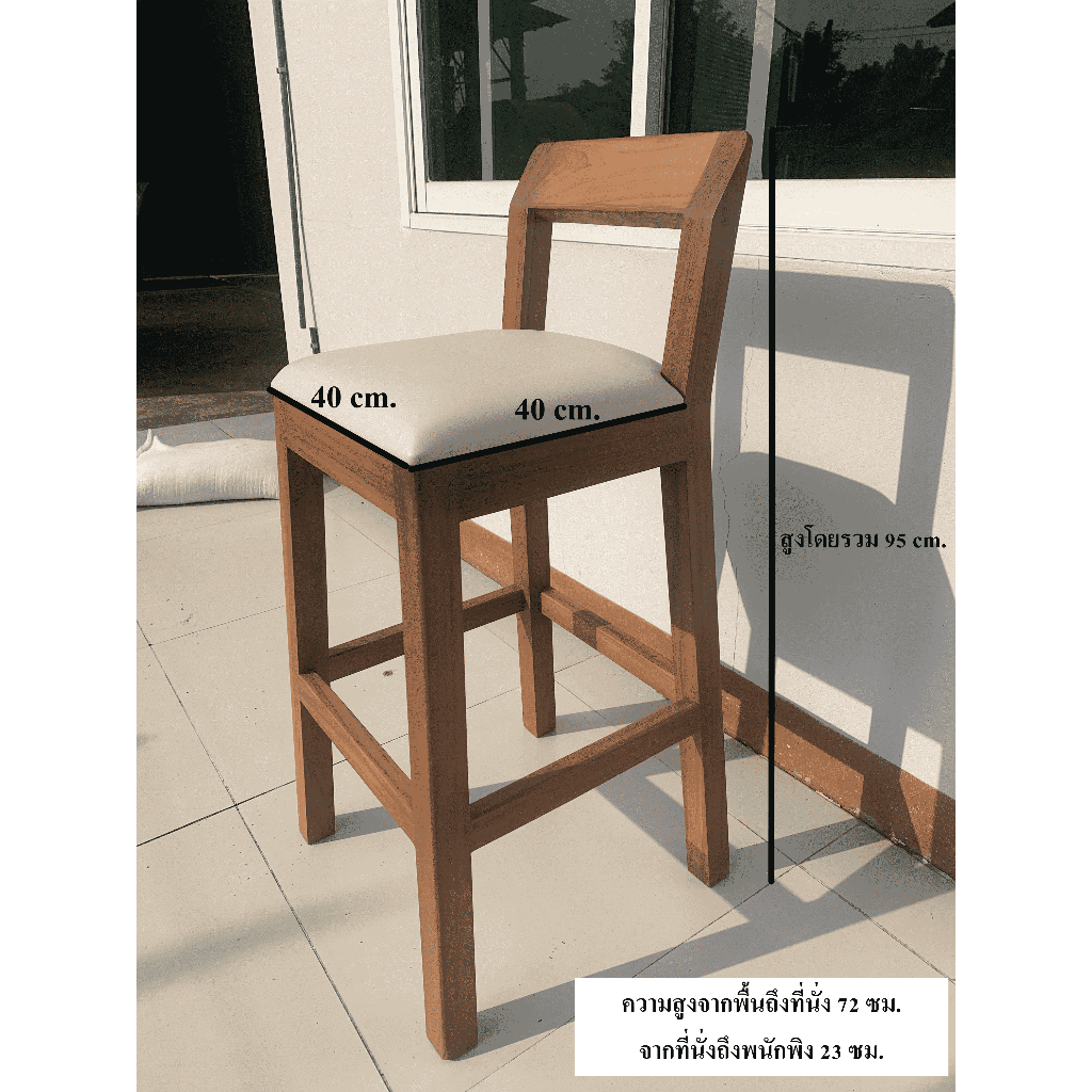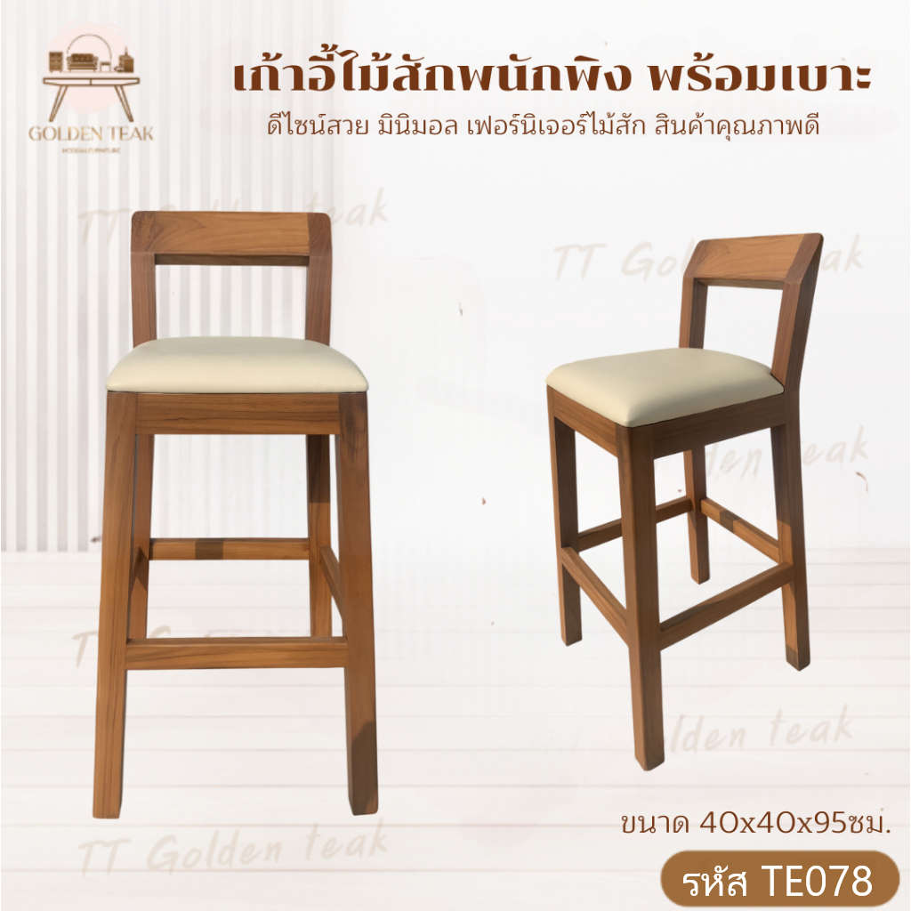เก้าอี้บาร์ไม้สักขนาด 40*40*95 ซม. พร้อมเบาะนั่ง เฟอร์นิเจอร์ไม้สัก งานไม้สักแท้ โรงงานผลิตเอง คุณภาพดี TE078