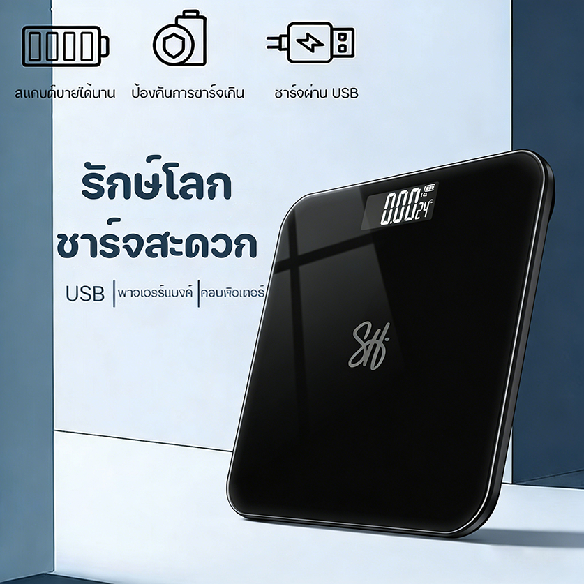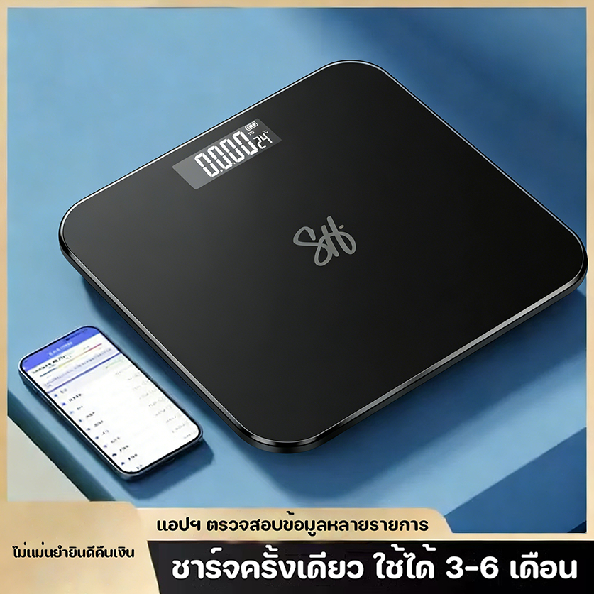 SweetHome เครื่องชั่งน้ำหนัก วัดไขมัน 180kg BMI เชื่อมต่อแอพ ชาร์จ USB หน้าปัดกระจกนิ ตาชั ่ง เครื่องชั่งน้ำหนักดิจิตอล