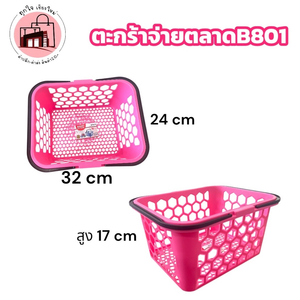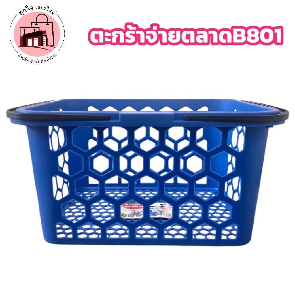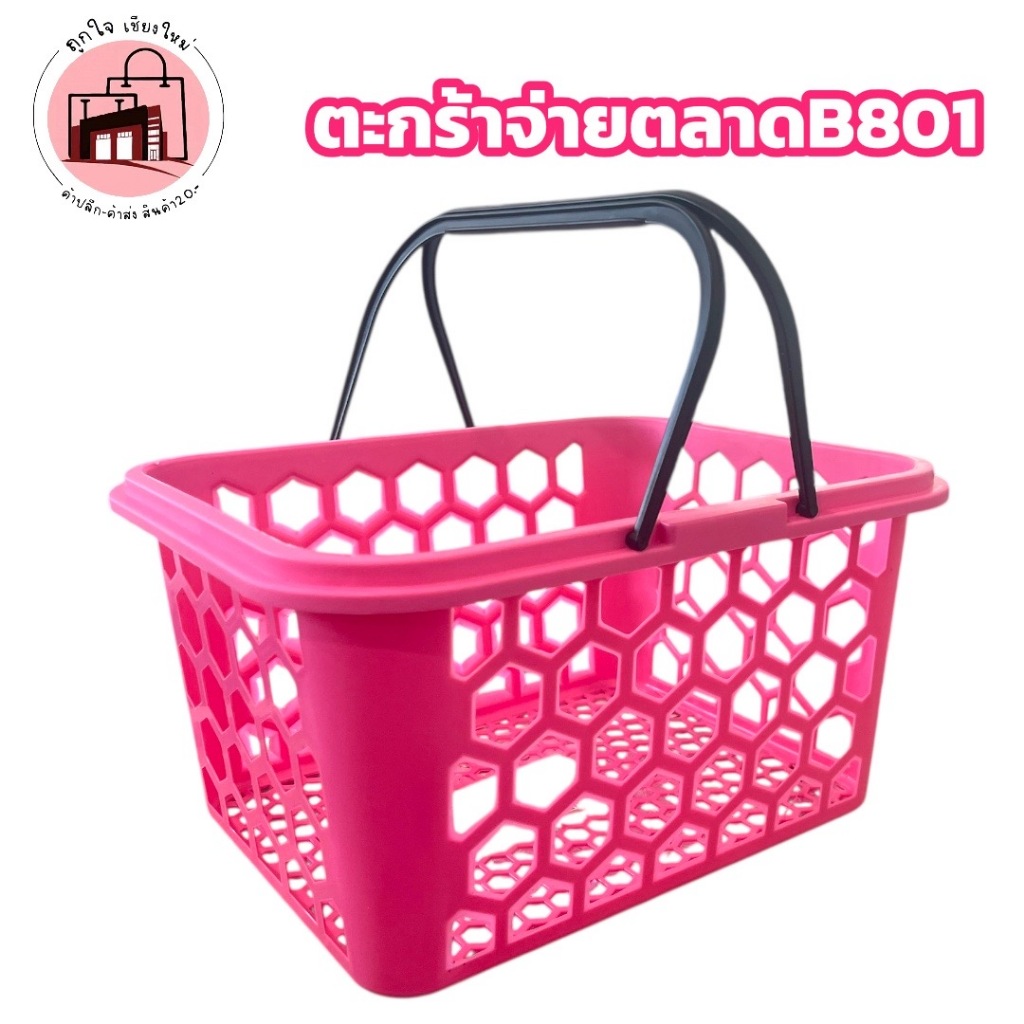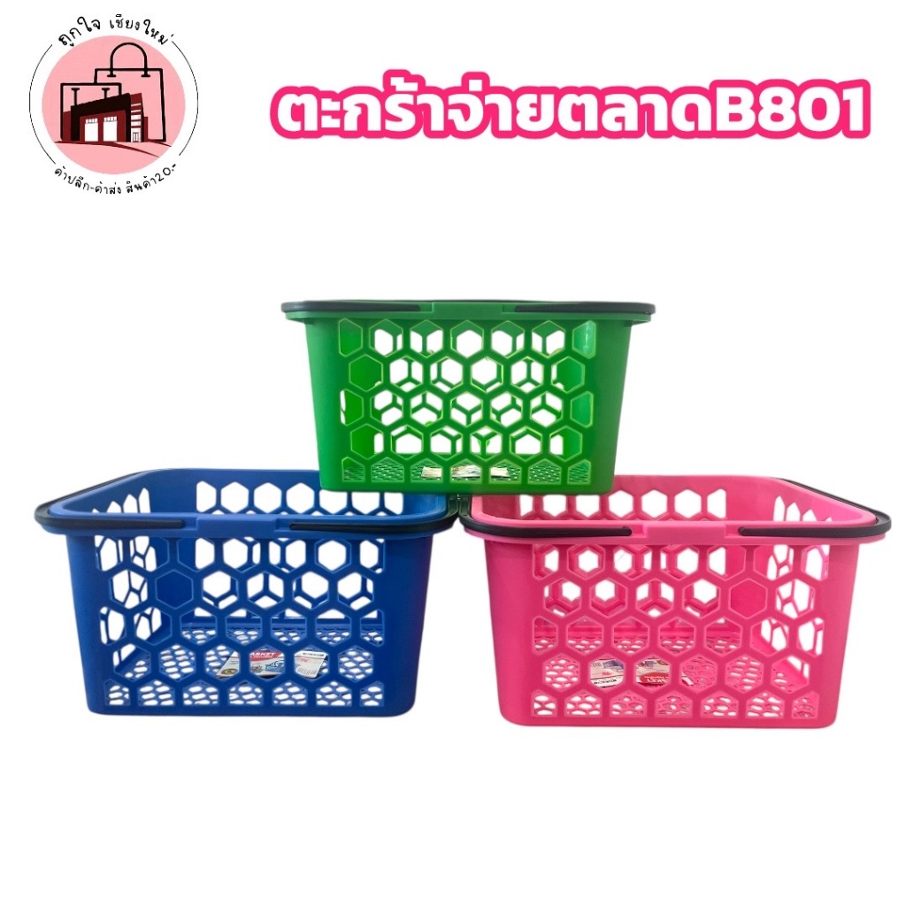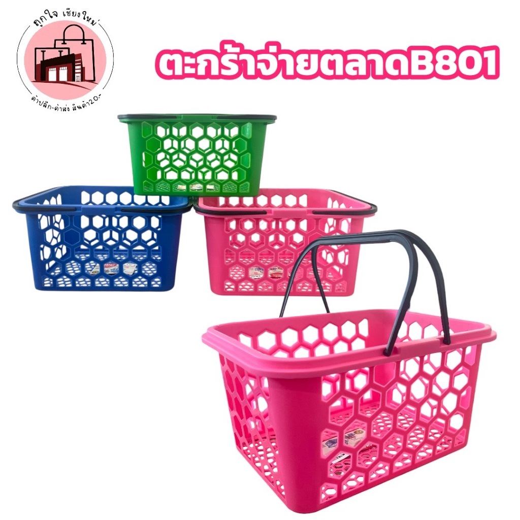 ตะกร้าจ่ายตลาด B801 | ตะกร้าพลาสติกมีหูหิ้ว แข็งแรง น้ำหนักเบา 4 สี