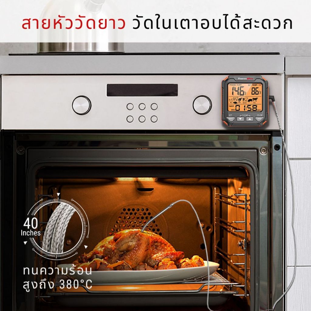 ThermoPro TP716 เครื่องวัดอุณหภูมิอาหารดิจิทัล เครื่องวัดอุณหภูมิสำหรับ BBQ เตาอบ เเละสโมคเกอร์