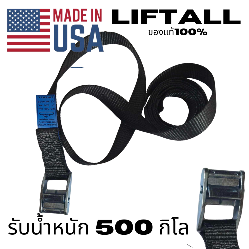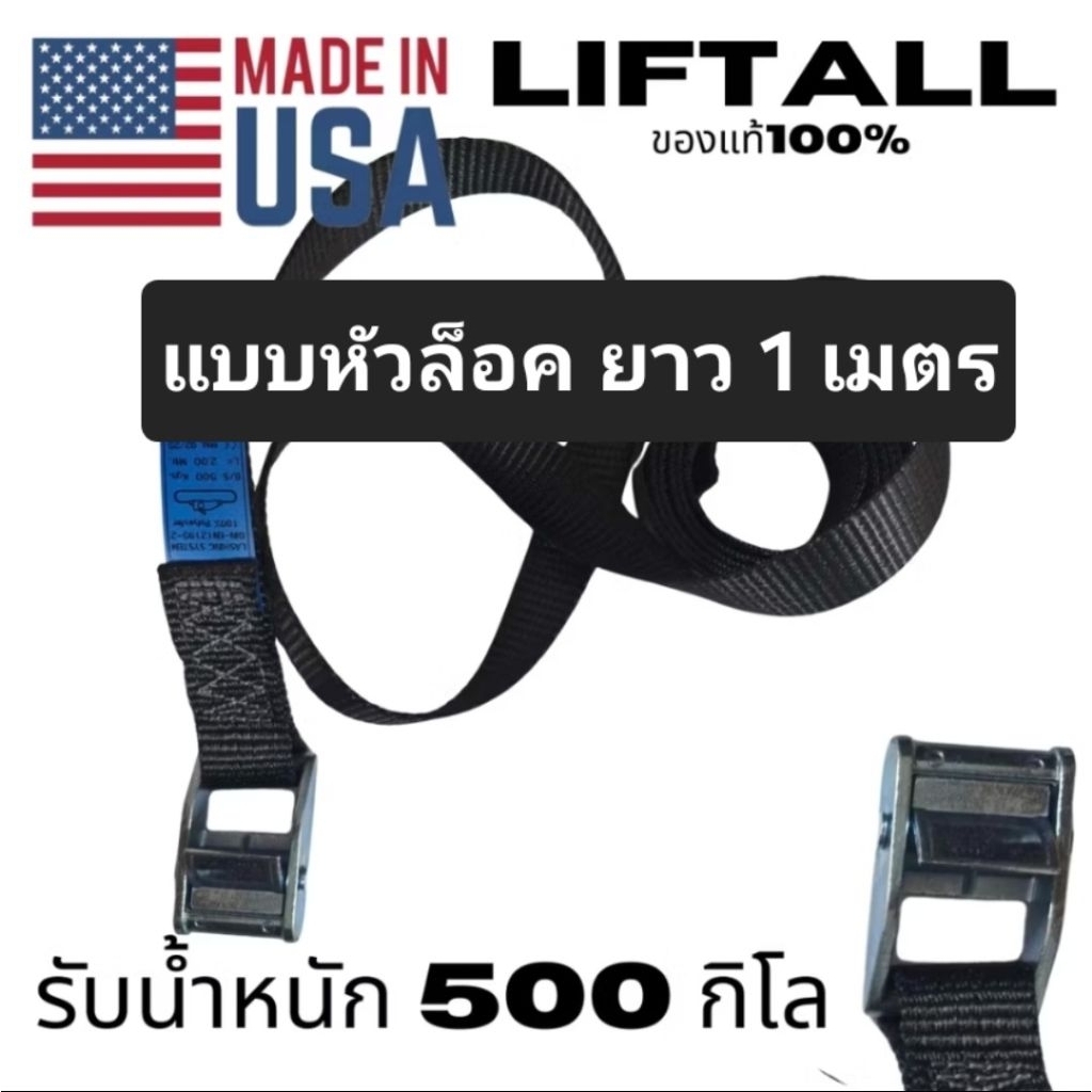 สายรัดของ Lift All งานอเมริกา 2 รุ่น หัวล็อคอัตโนมัติ กับ ตะขอคู่ สีดำ ยาว 2 เมตร งานเมกา