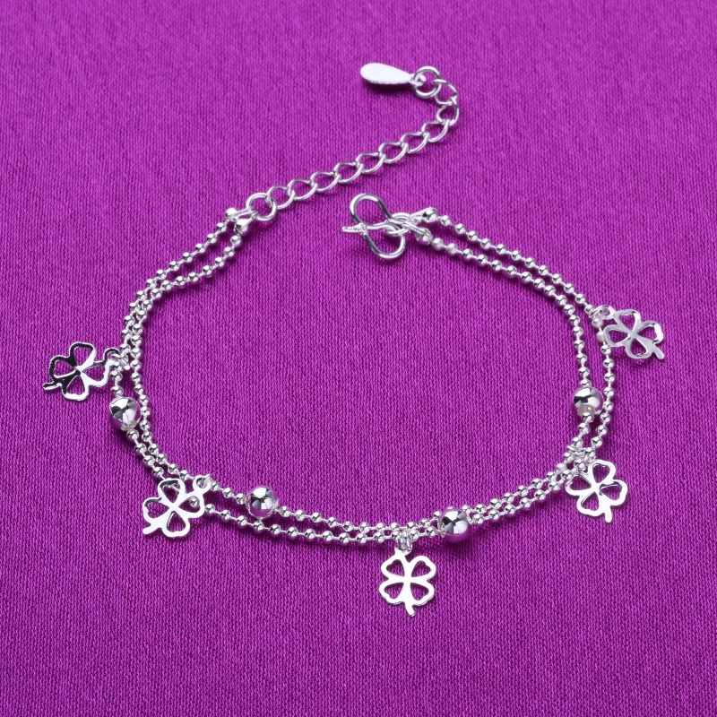 กําไลข้อเท้า อินเทรนด์ หัวใจ พู่ เงิน สร้อยข้อมือโซ่หลายชั้น สร้อยข้อเท้า ผู้หญิง เครื่องประดับ อุปกรณ์เสริม