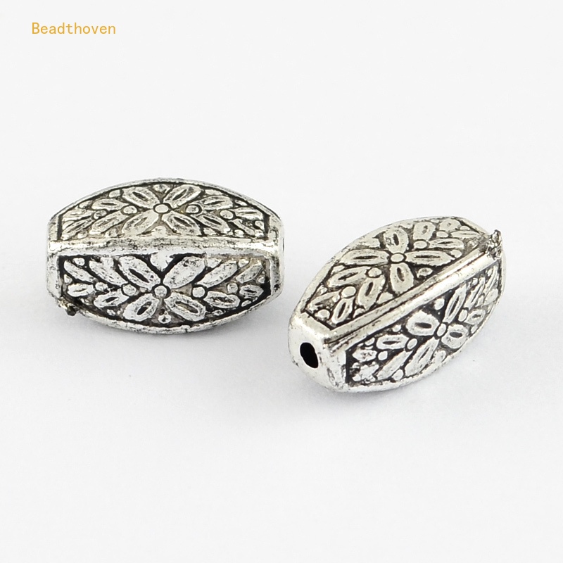 ลูกปัดอะคริลิคโบราณสีเงิน 13X7X7มม. 100ชิ้น: 2มม.