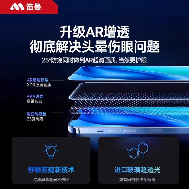 [คุณภาพดี] [AR Eye Protection Germany Privacy Protection] Deman เหมาะสําหรับ Apple 17Promax Privacy Protection Tempered Film iphone16pro Privacy Protection 15 Mobile Phone Film air HD 14 Full Screen Pro Shock-proof 13 Film 0XGZ