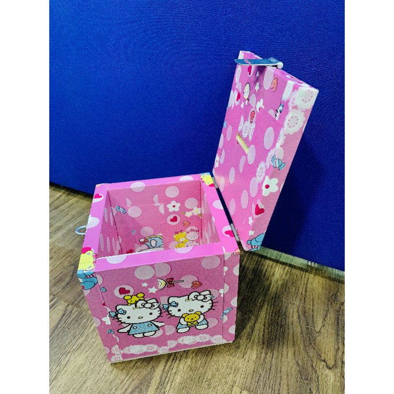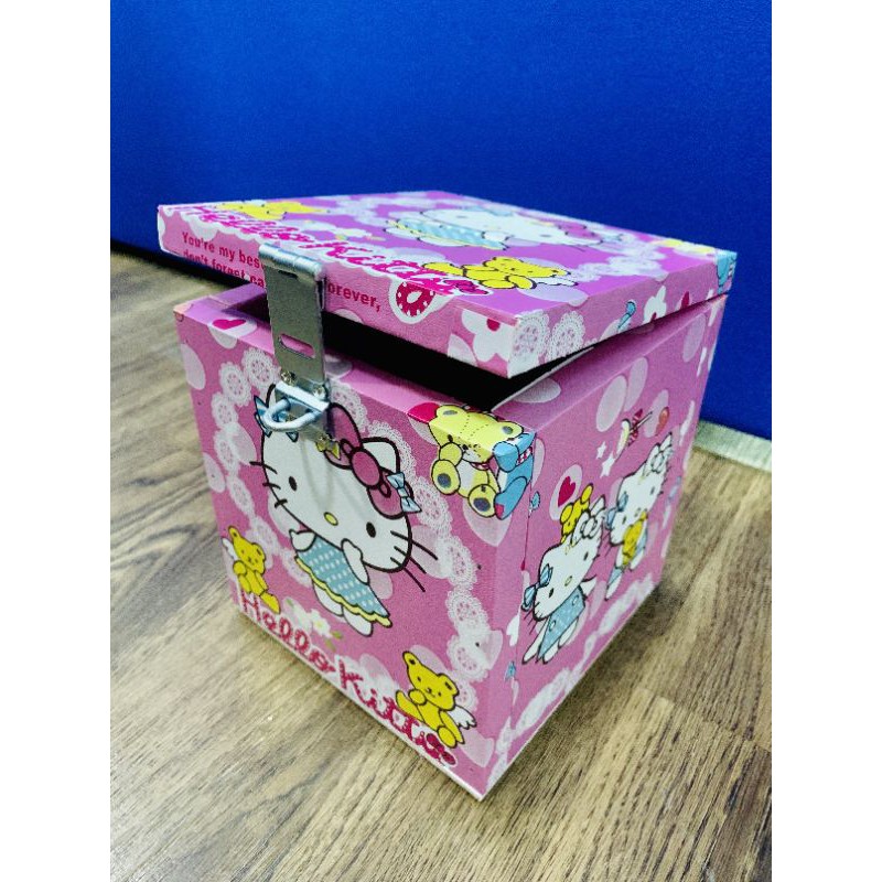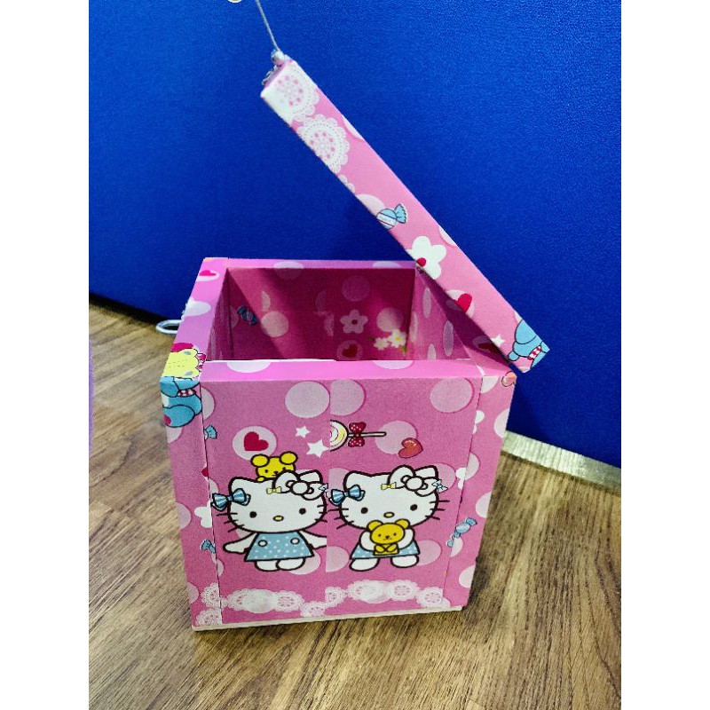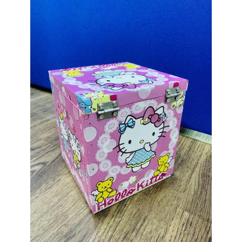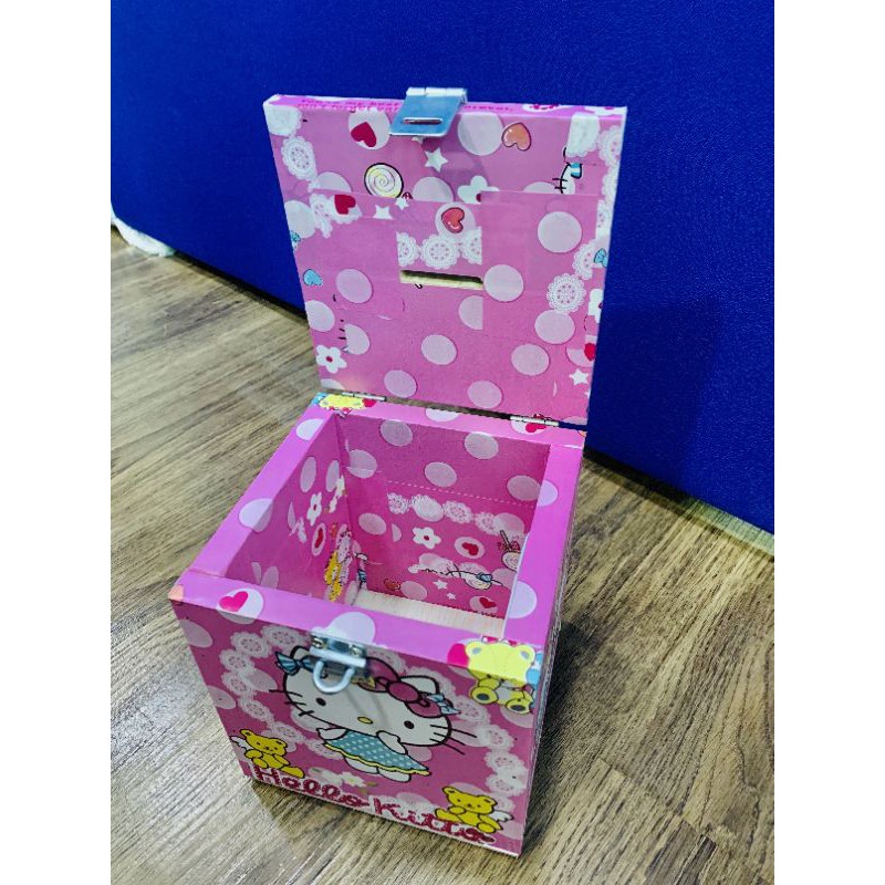 kittyกระปุกออมสินคิตตี้กล่องไม้กล่องTIPBOXมาพร้อมตัวล๊อคกุญแจ ขนาด6×6×6นิ้ว
