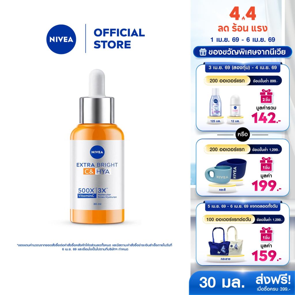 นีเวีย เอ็กซ์ตร้า ไบรท์ ซี แอนด์ ไฮยา วิตามิน เซรั่ม 30 มล. NIVEA เซรั่ม เซรั่มไฮยา