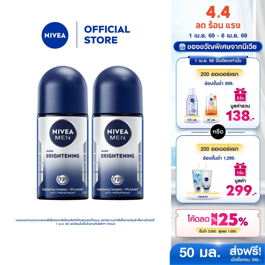 นีเวีย เมน ไบรท์เทนนิ่ง โรลออน 50 มล. 2ชิ้น NIVEA