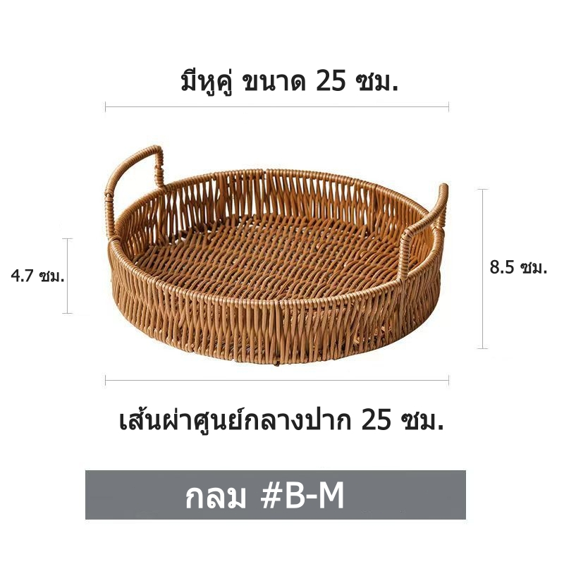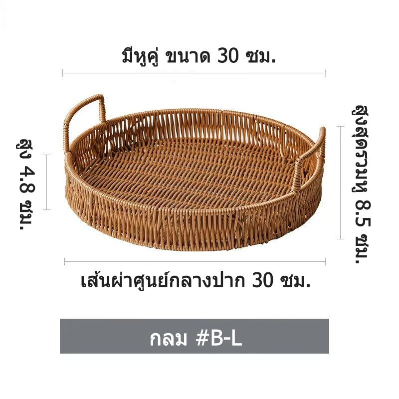ตะกร้าหวายสาน ถาดหวายเปีย พร้อมที่จับ ทรงกลม/สี่เหลี่ยม ตะกร้าสาน สําหรับใส่ผลไม้ ขนมขบเคี้ยว ถาดขนมปัง