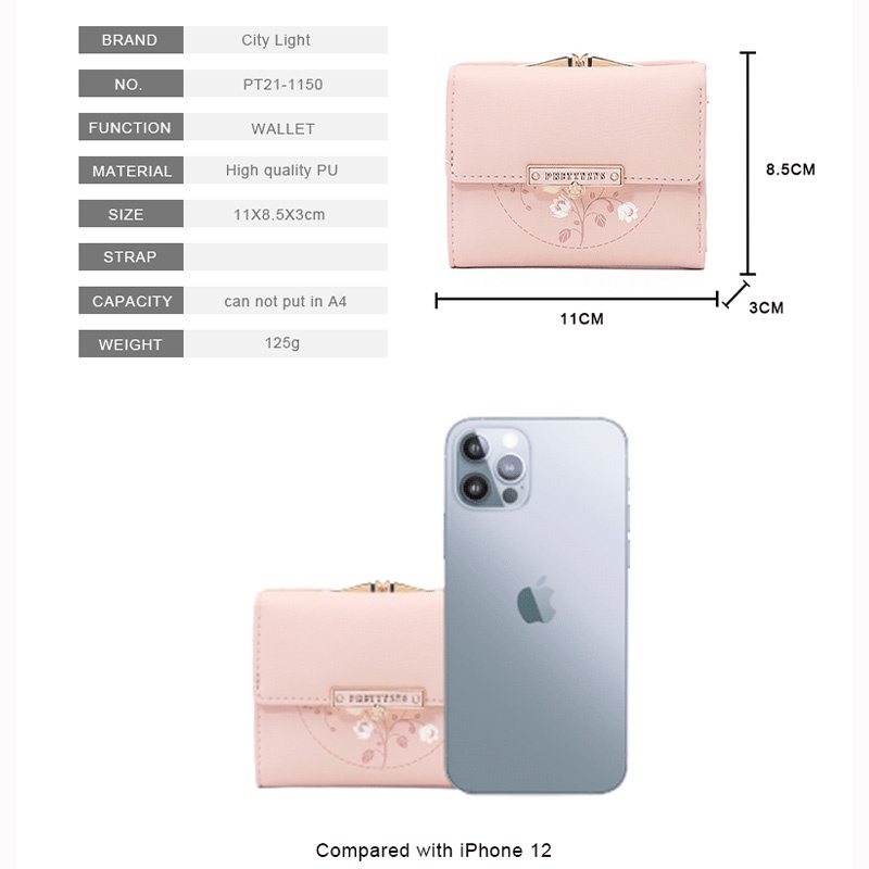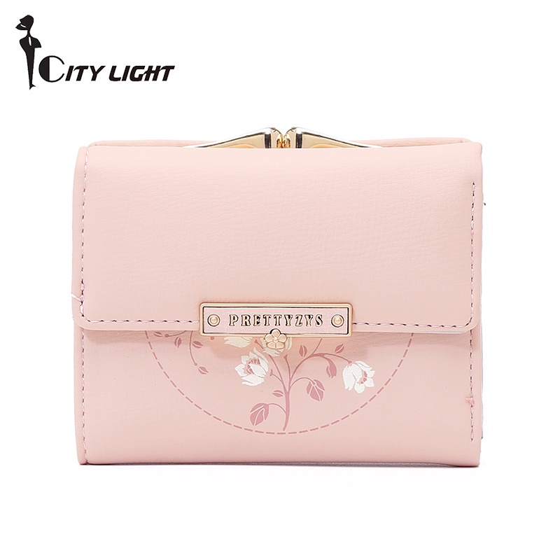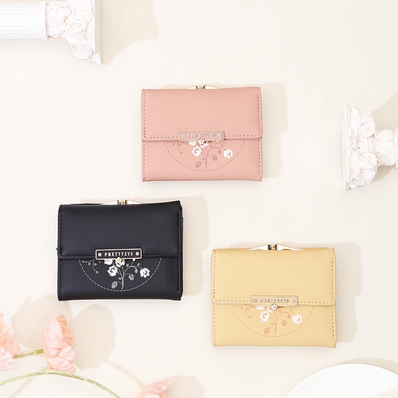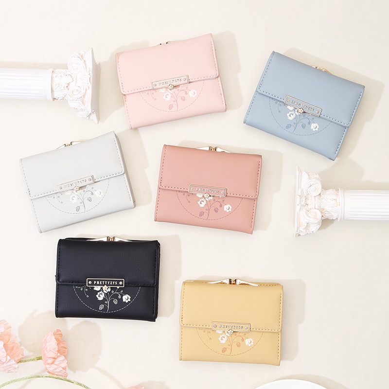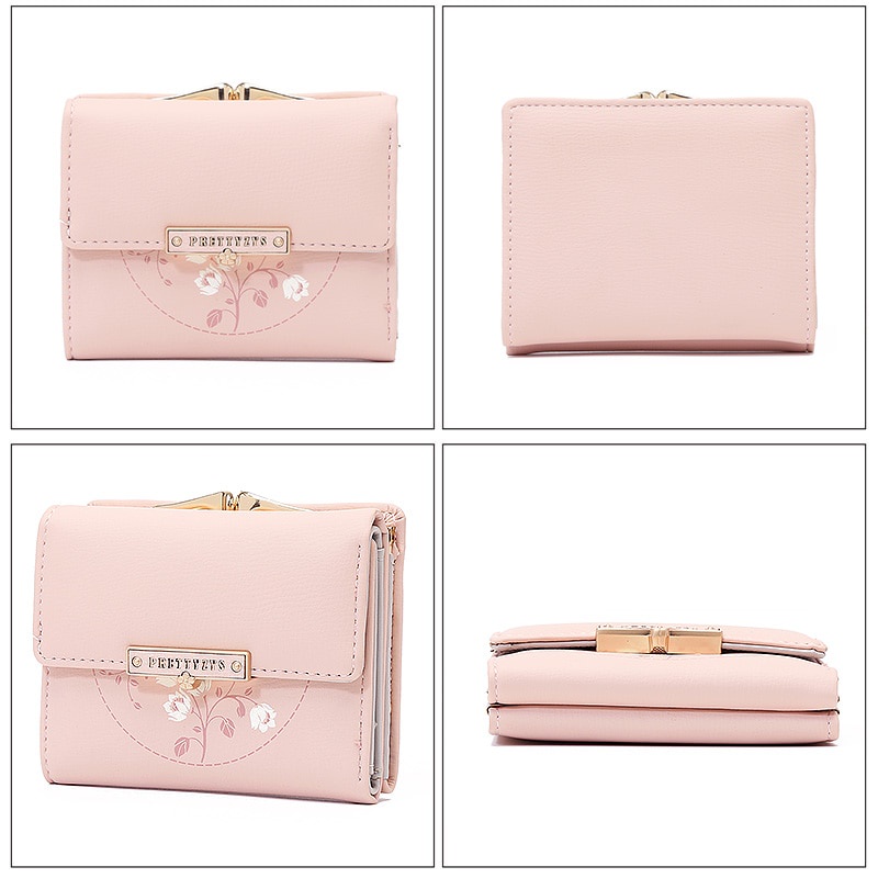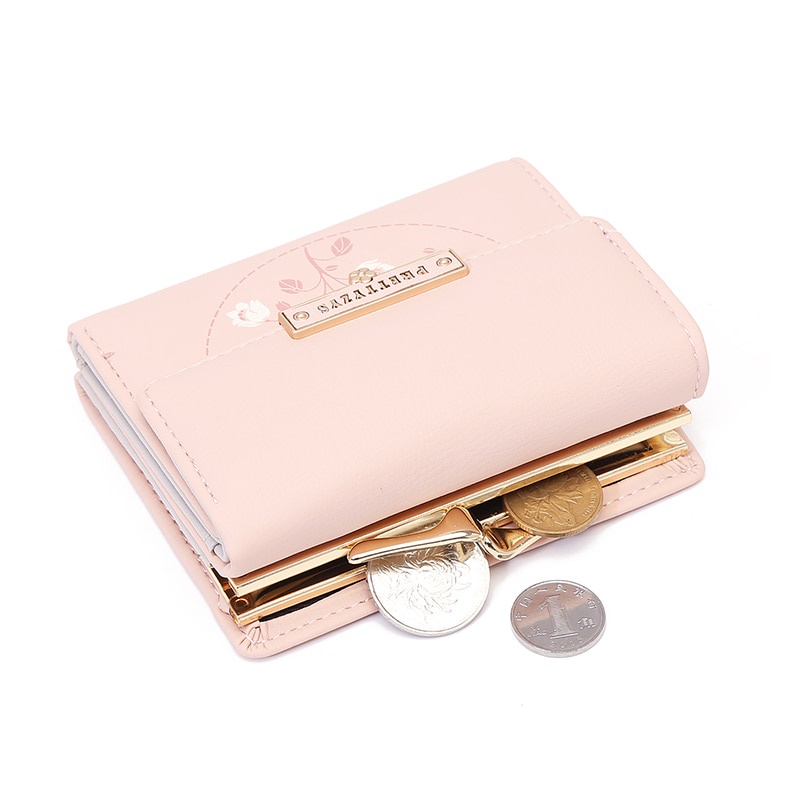 กระเป๋าสตางค์กระเป๋าเก็บเหรียญขนาดเล็กแบบพับทรงสั้นสําหรับผู้หญิง