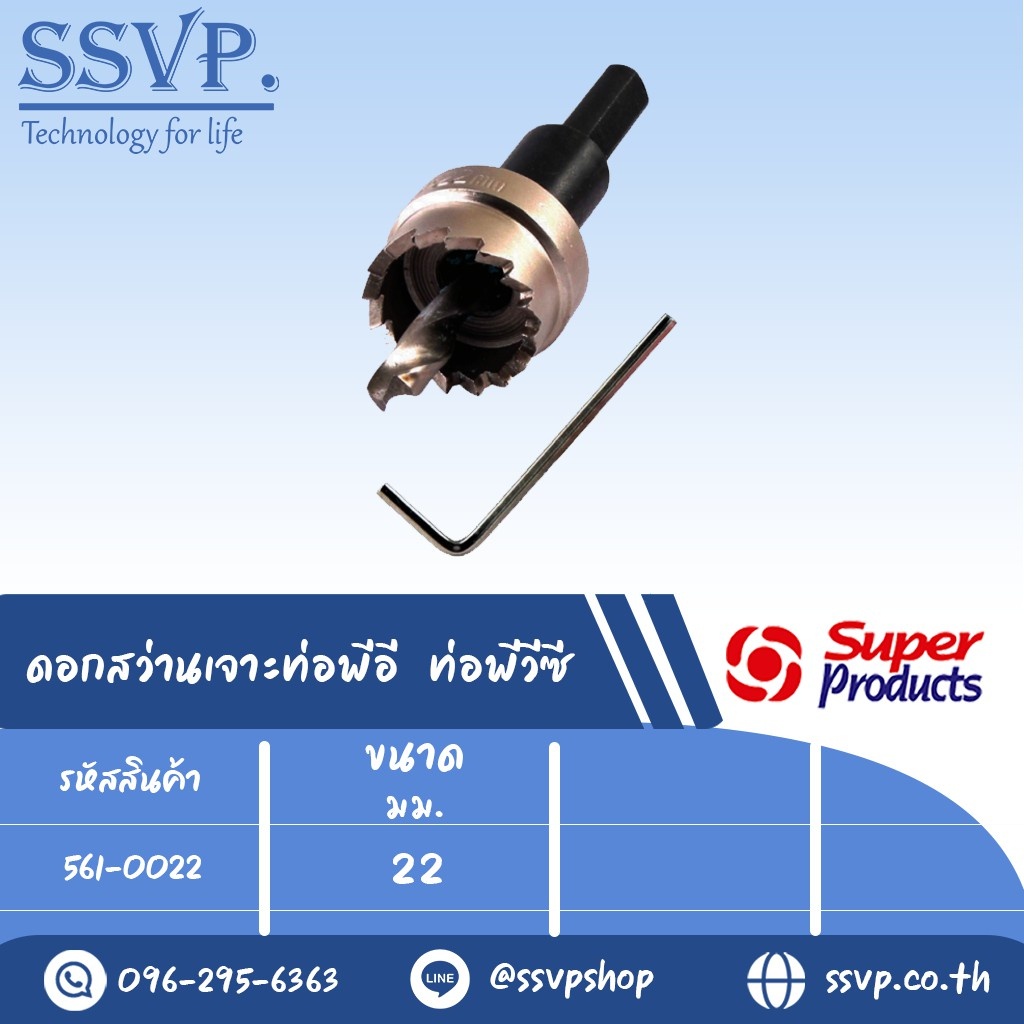 ดอกสว่านเจาะท่อพีอี ท่อพีวีซี รหัส 561-0022 ขนาด 22 mm. (แพ็ค 1 อัน)