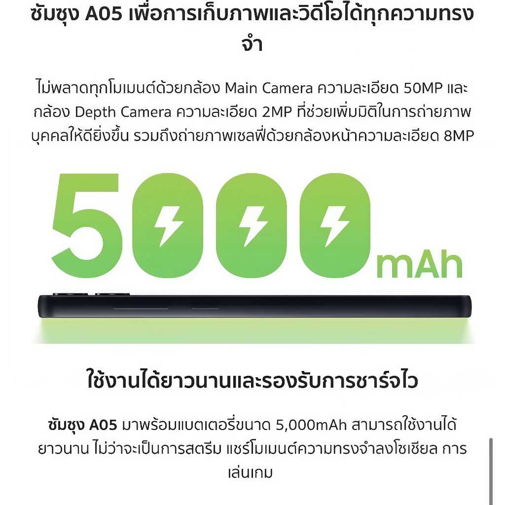 สมาร์ทโฟน A05 6GB/128GB ขนาดหน้าจอ 6.7 นิ้วความจุแบตเตอรี่ 50MP การรับประกันร้านค้า 1 ปี