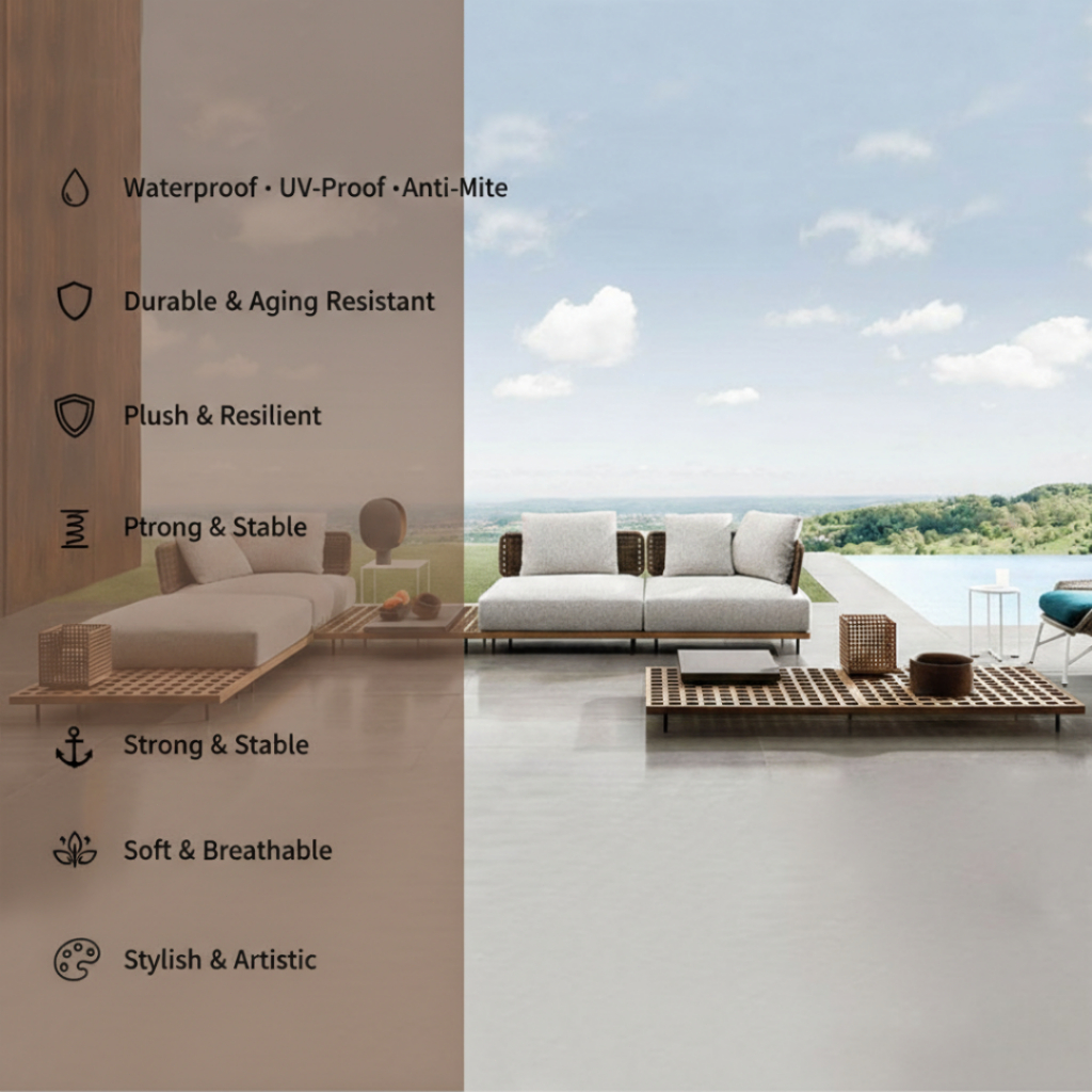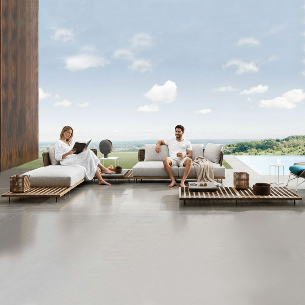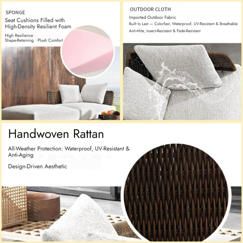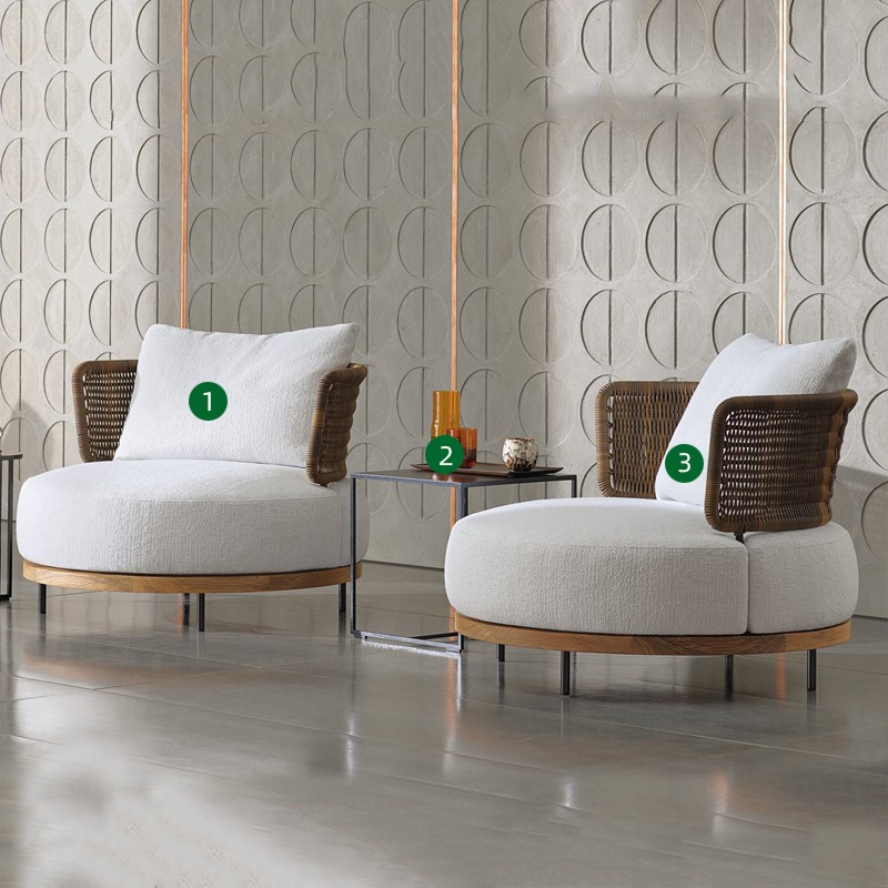 BUNISE Arcadia Outdoor Rattan Sofa Chair Teak Wood Frame Waterproof Sun Resistant for Garden Villa Free ShippingThailand