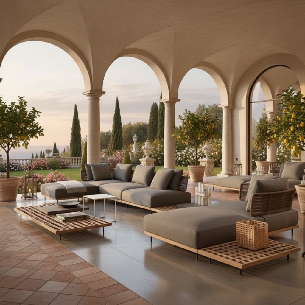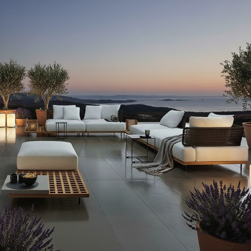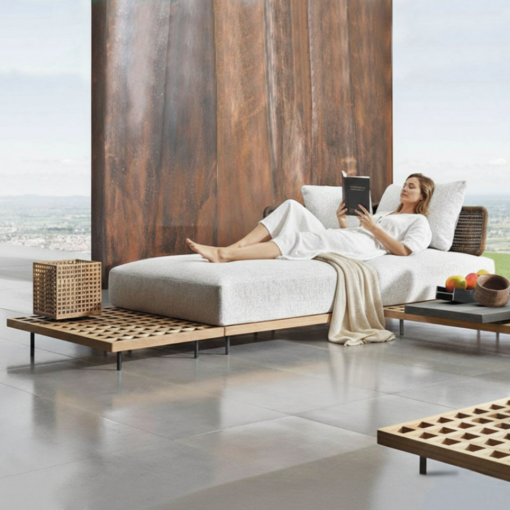 BUNISE Arcadia Outdoor Rattan Sofa Chair Teak Wood Frame Waterproof Sun Resistant for Garden Villa Free ShippingThailand