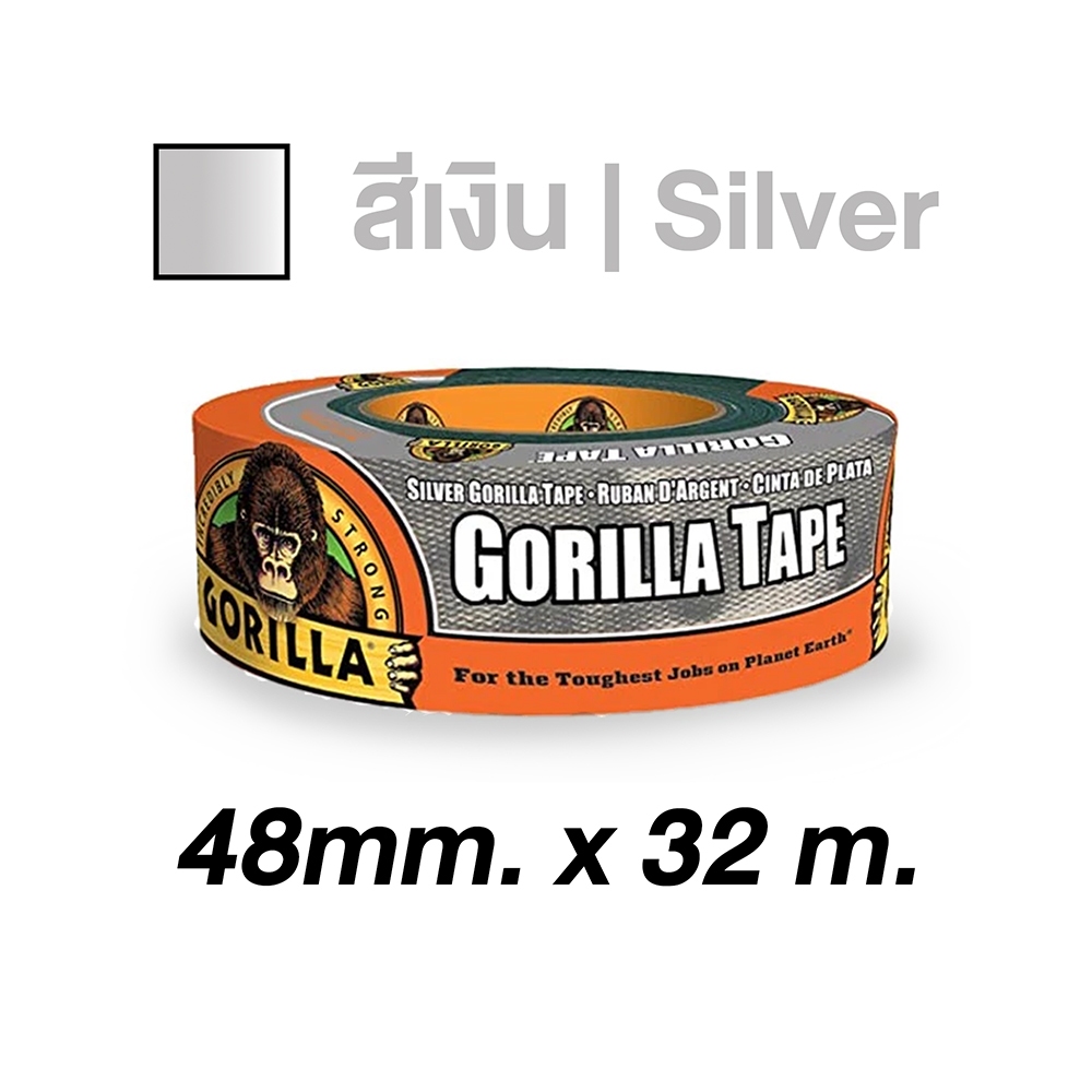 Silver Gorilla Tape กอริลล่า เทปผ้าแรงยึดสูง สีเงิน 32 เมตร