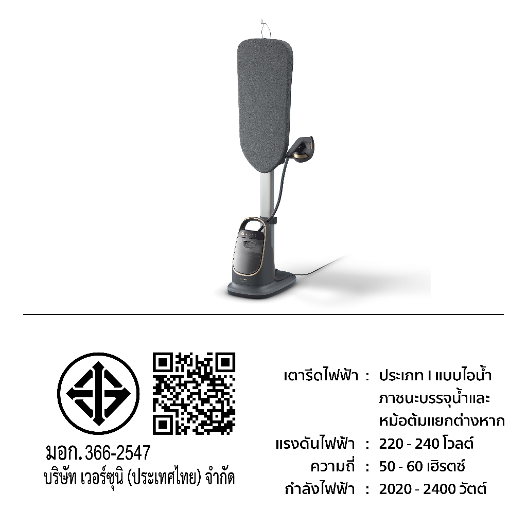 Philips AIS8540 เตารีดแรงดันไอน้ำแบบยืนรีด All-In-One 6 บาร์ Optimal TEMP การันตีไม่มีผ้าไหม้ รับประกัน 2 ปี