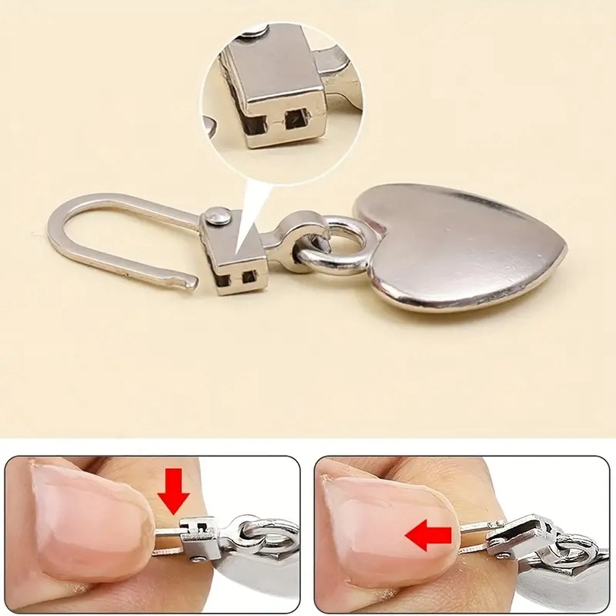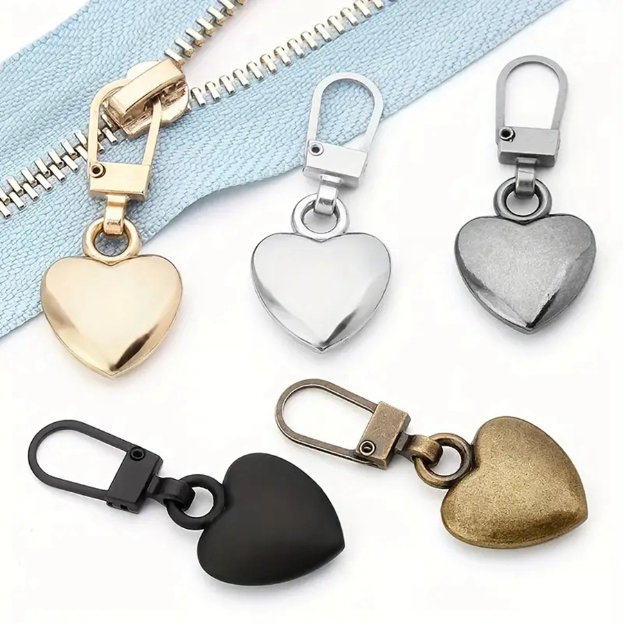 5 ชิ้น รูปหัวใจ โลหะ ซิปจับ ที่ถอดออกได้ ซิป ดึง ชุดซ่อมหัว สําหรับแตก หัวเข็มขัด กระเป๋าเดินทาง DIY เย็บผ้า หัตถกรรม