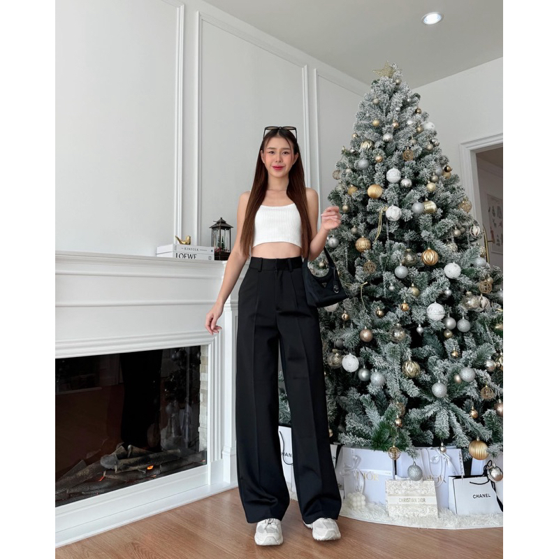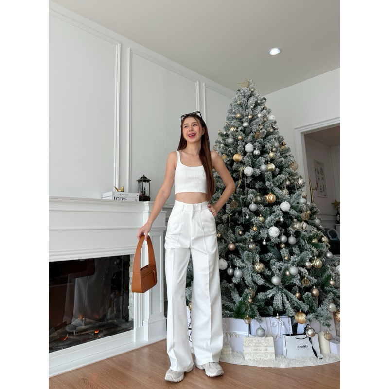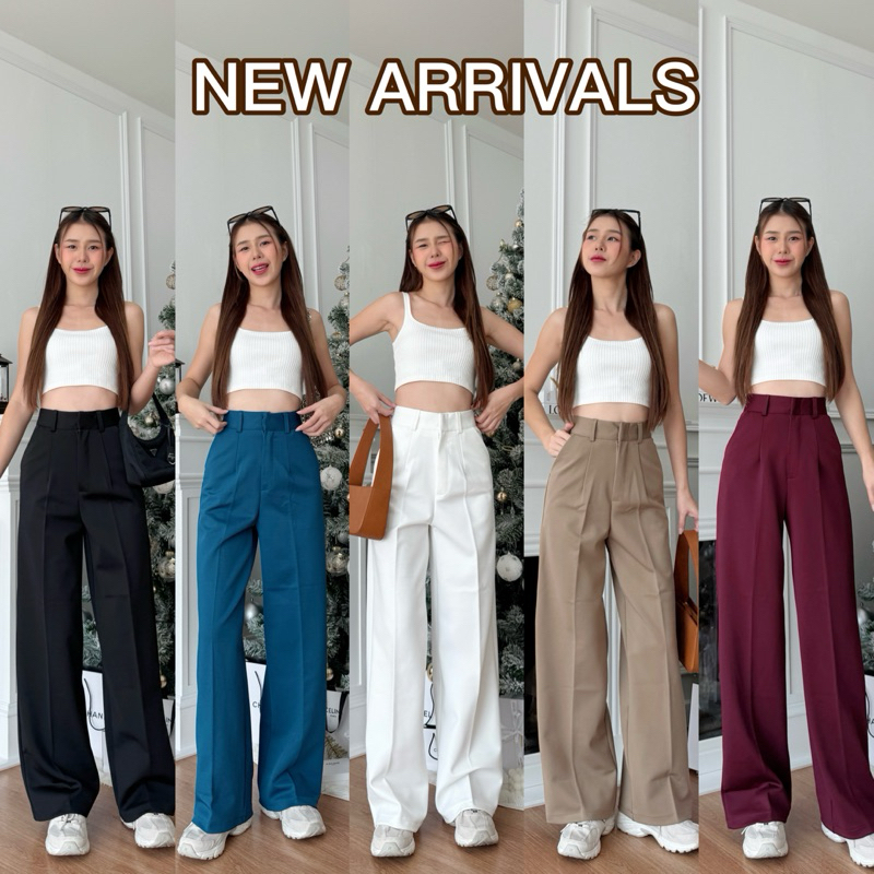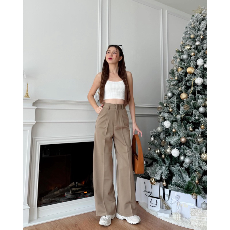 กางเกงขากระบอกสีพื้นงานเอวสูงผ้าโรเชฟ (พรีเมียร์)☁️🥣🧸