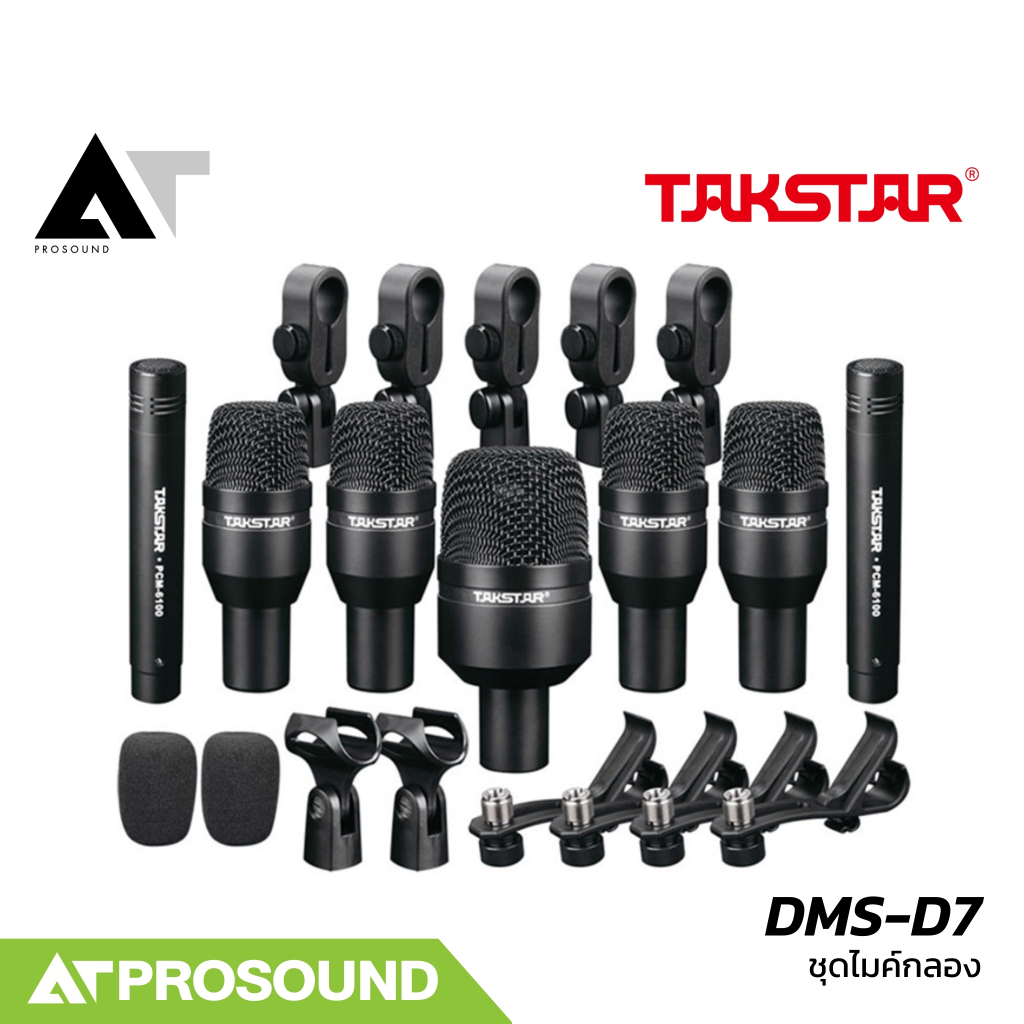 Takstar DMS-D7 ไมค์กลอง ไมค์กลองชุด ชุดไมโครโฟนสำหรับกลองชุด 7 ตัว และมาพร้อมกระเป๋าหิ้ว AT Prosound