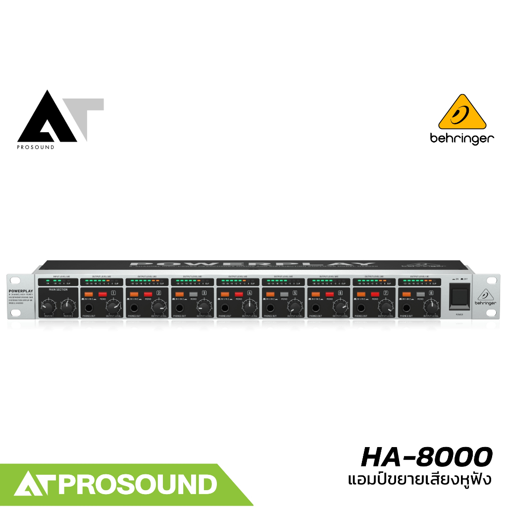 Behringer HA-8000 แอมป์ขยายเสียงหูฟัง 8 ช่อง กำลังขับสูง ปรับเสียงแยกได้อิสระ ทุกแชนแนล AT Prosound