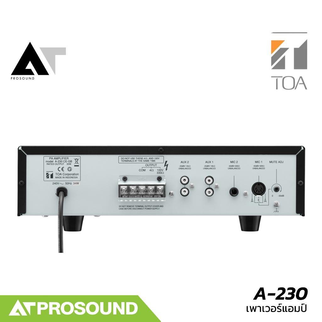 TOA A-230 HV เพาเวอร์แอมป์ ขนาด 30 วัตต์ มี EQ ในตัว 2-band และช่องสัญญาณขาเข้า 4 ช่อง AT Prosound