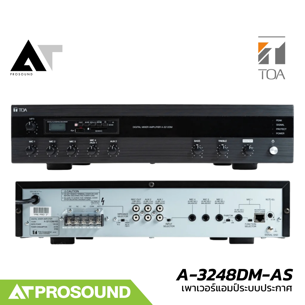 TOA A-3248DM-AS เพาเวอร์แอมป์ระบบประกาศ ขนาด 480 วัตต์ คุณภาพสูงสำหรับ ระบบกระจายเสียง AT Prosound
