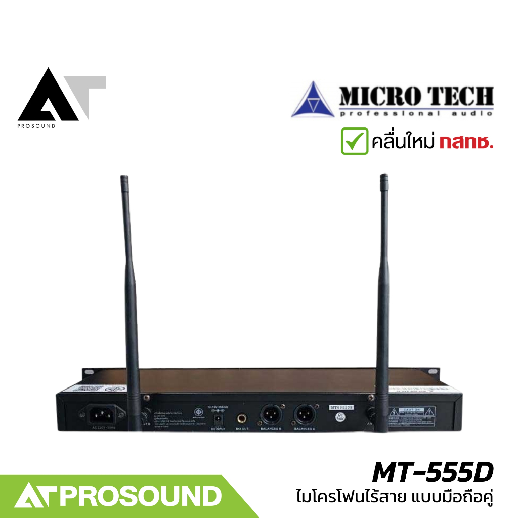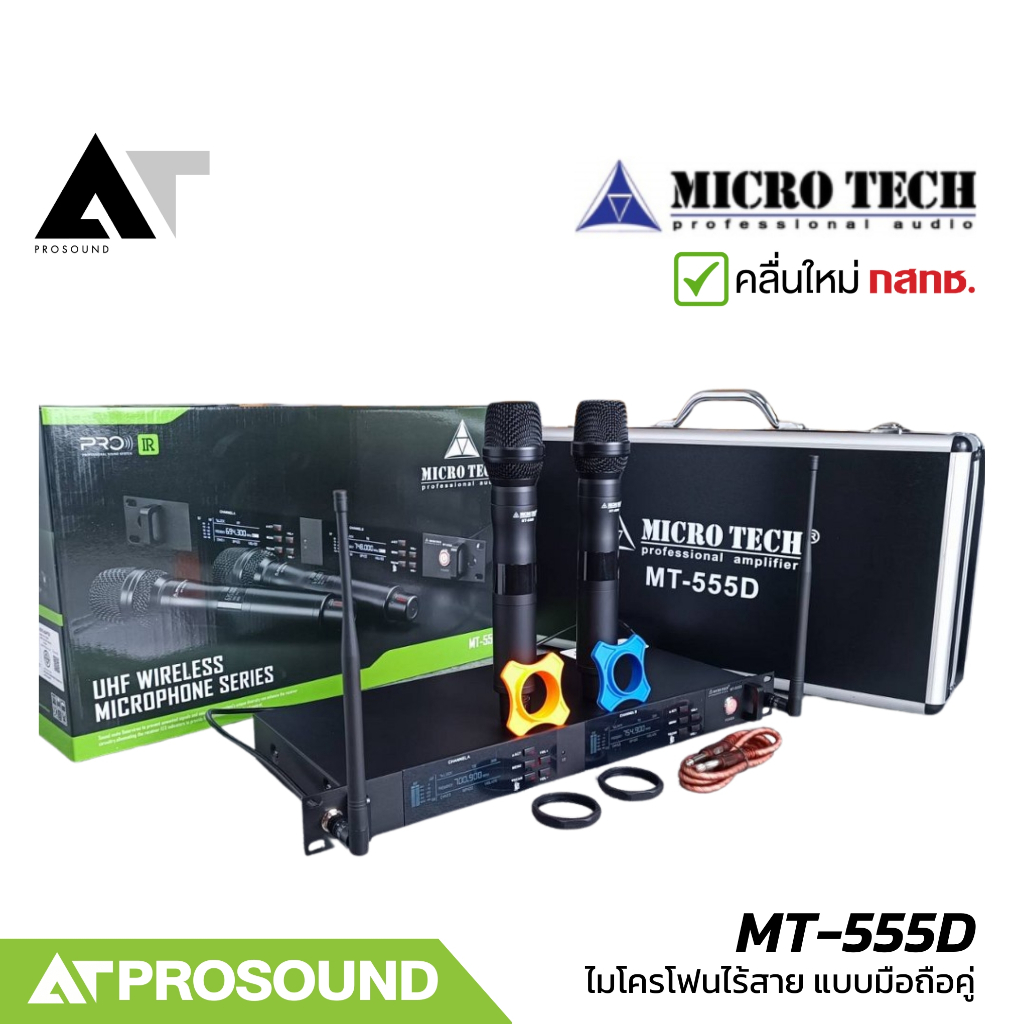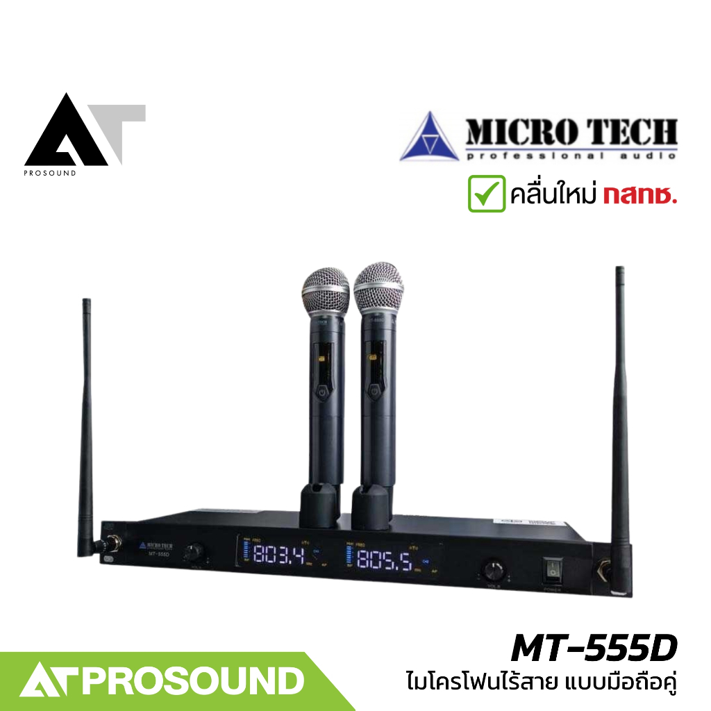 MICROTECH MT-555D ไมค์ไร้สาย 2 ตัว UHF 3 ช่วงความถี่ เครื่องรับสัญญาณสามารถยึดแร็คได้ AT Prosound