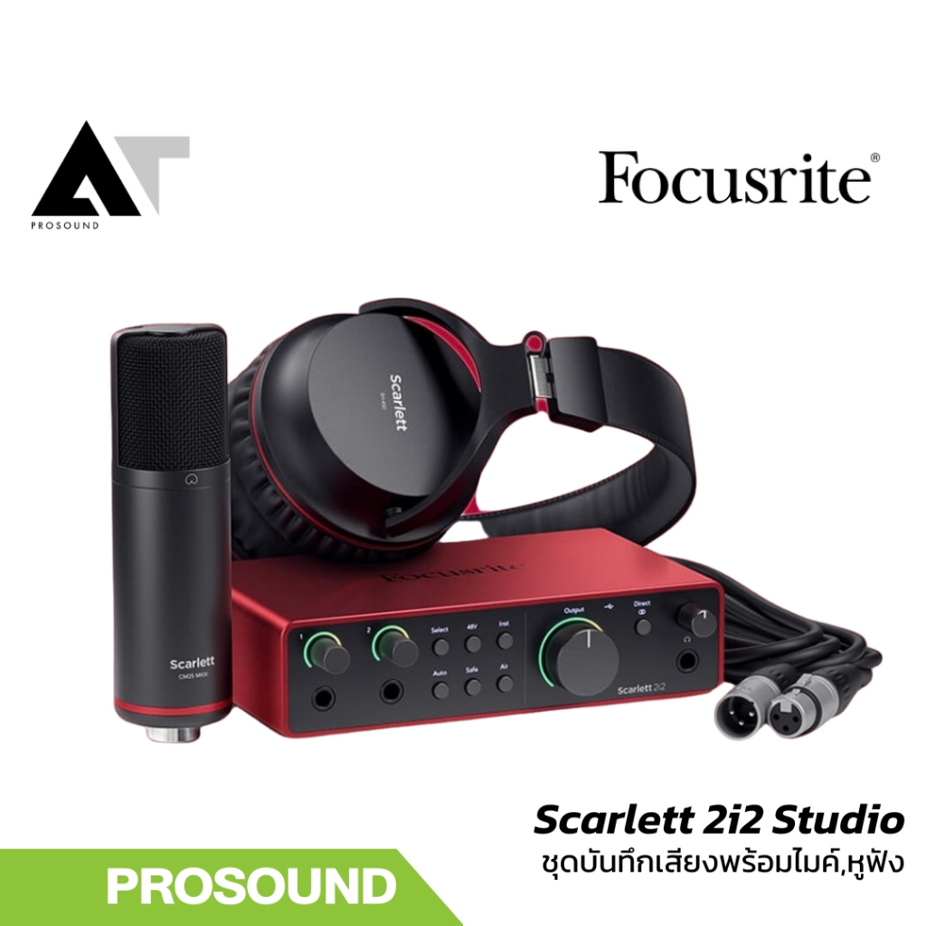 Focusrite Scarlett 2i2 Studio (4th Gen) ชุดออดิโออินเตอร์เฟส 2 แชนเนล พร้อมไมค์และหูฟัง AT Prosound