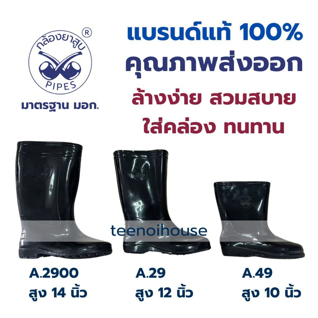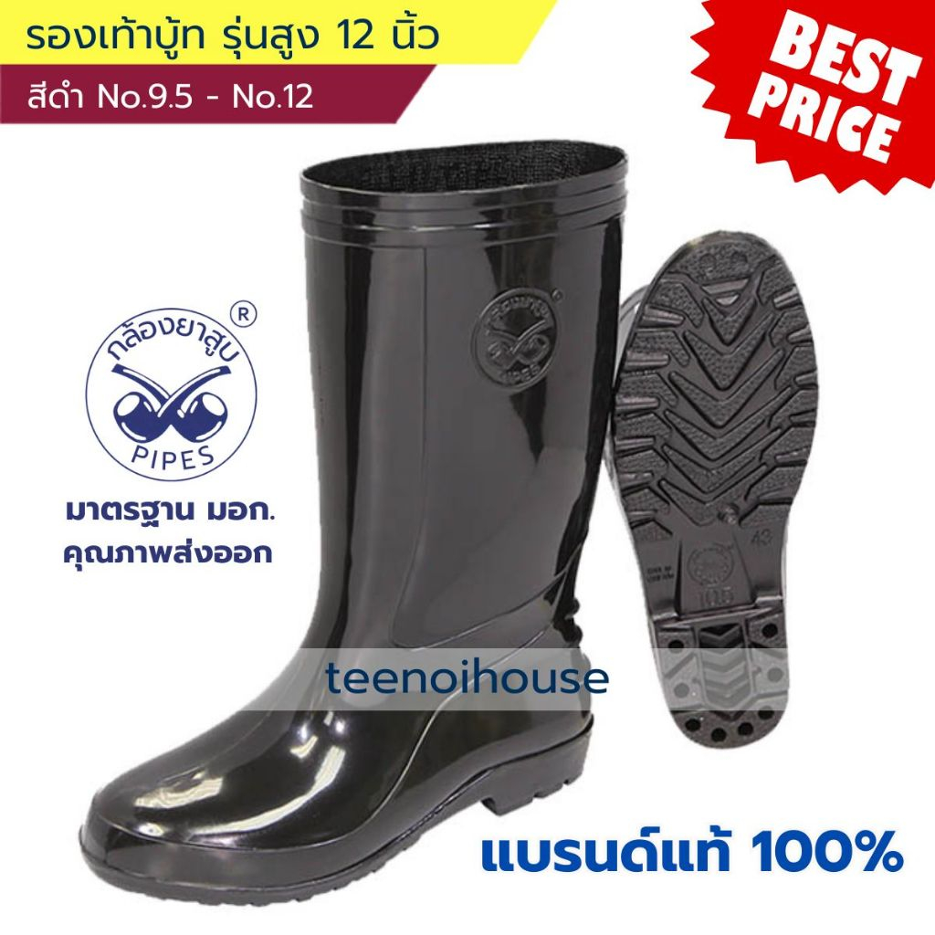 รองเท้าบู๊ท สีดำ รุ่นสูง12นิ้ว "PIPE" - พื้นกันลื่น